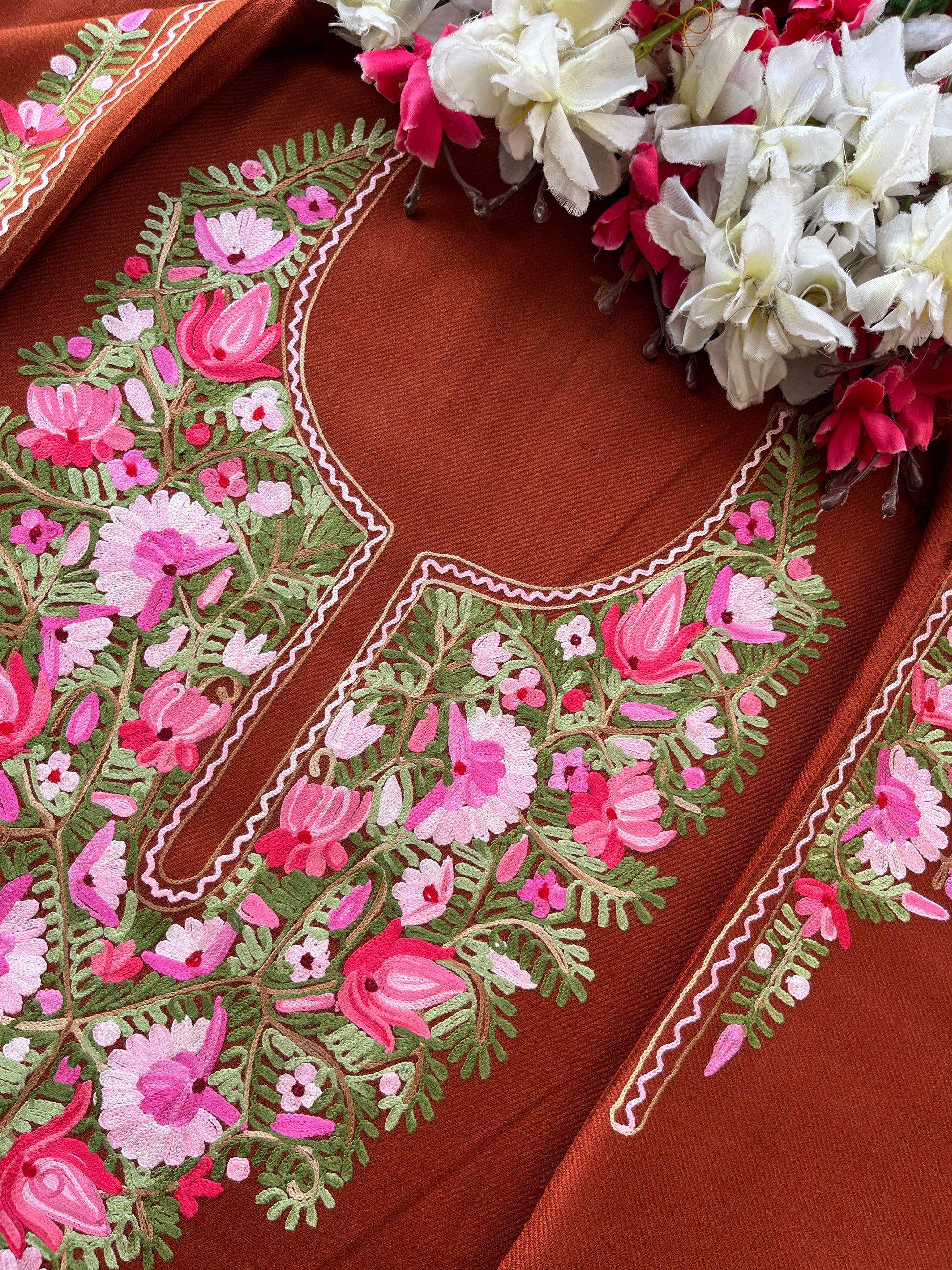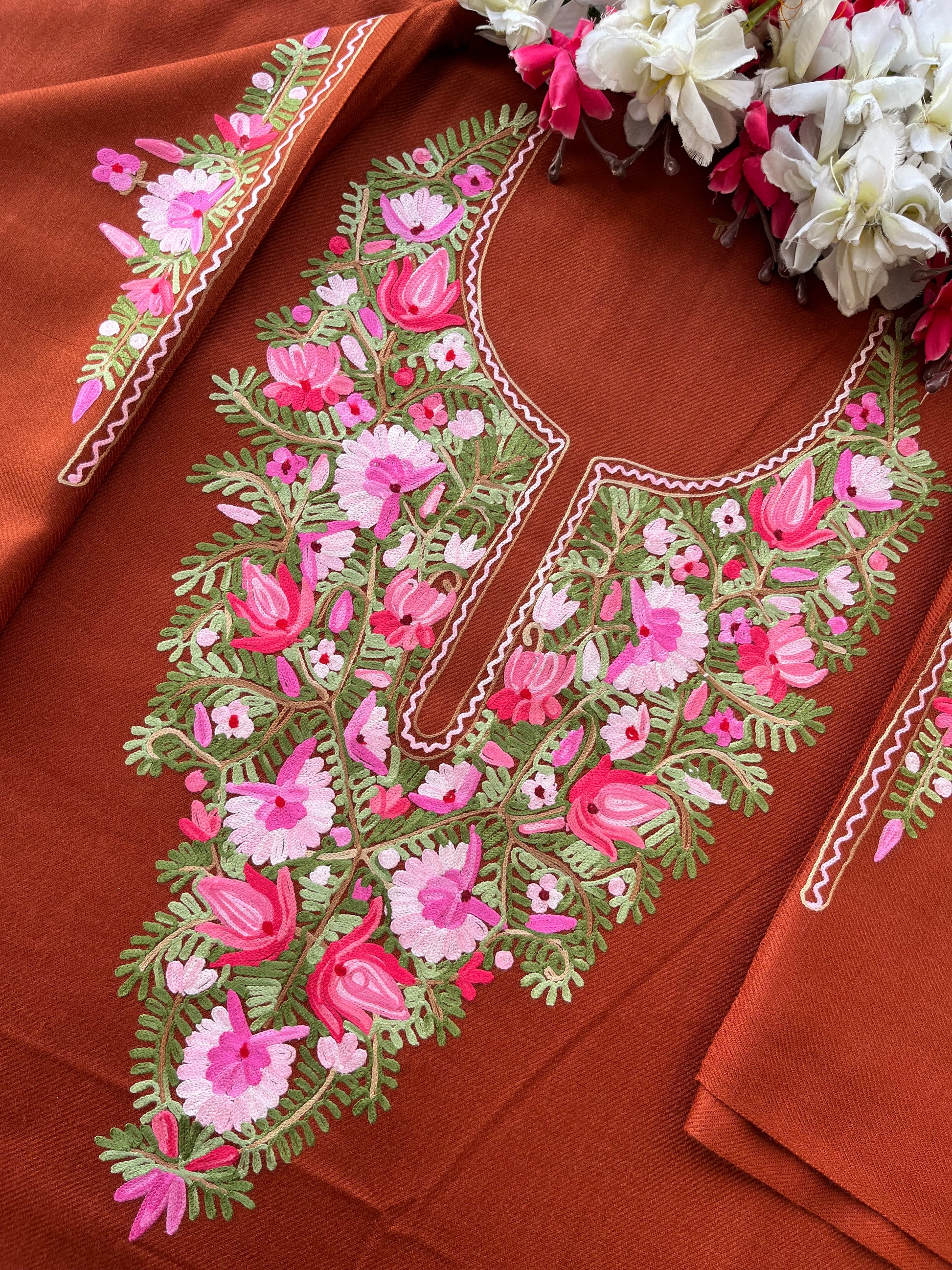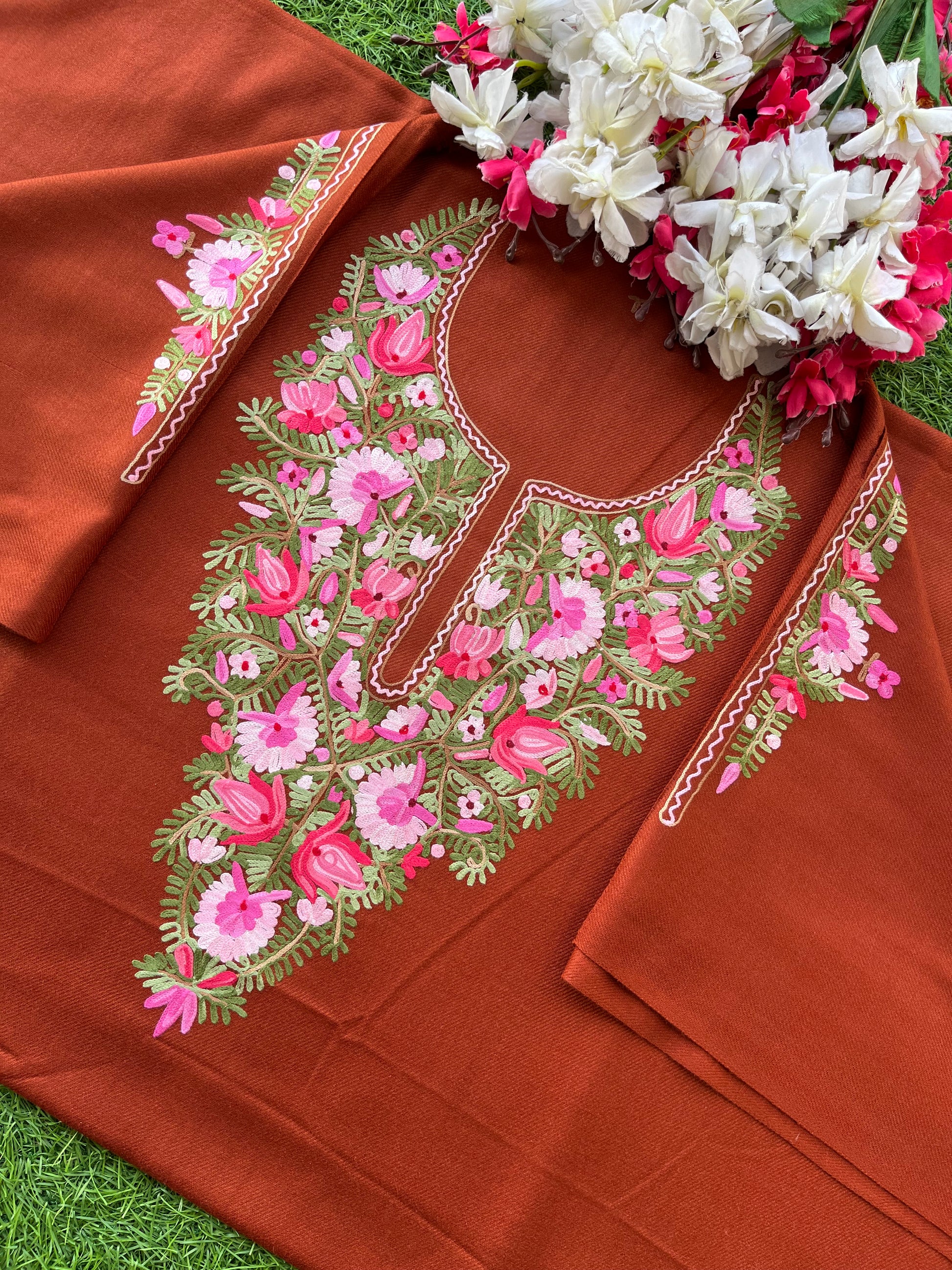 Rust Orange Woollen Aari Embroidered 2pc suit 5mtr