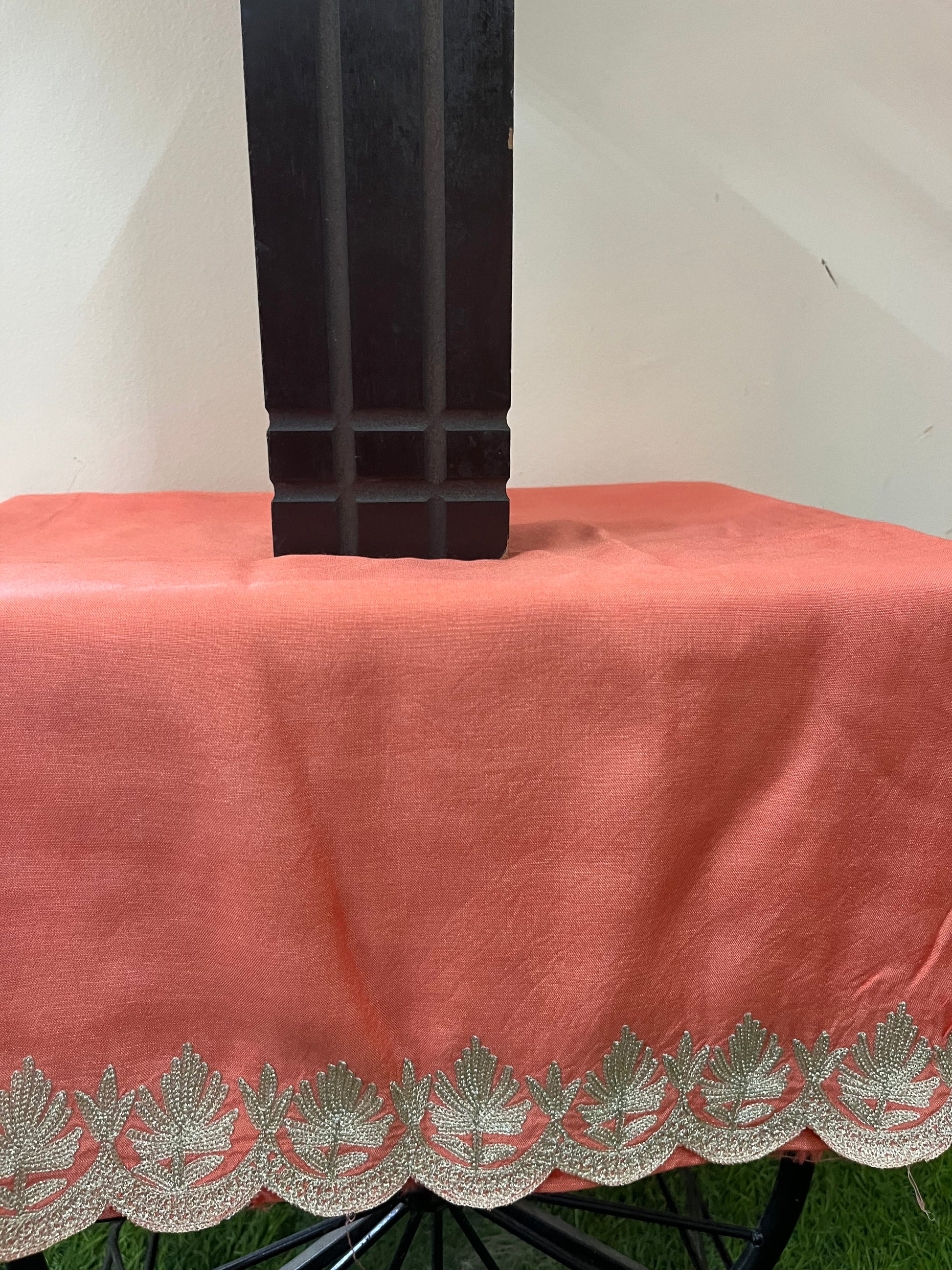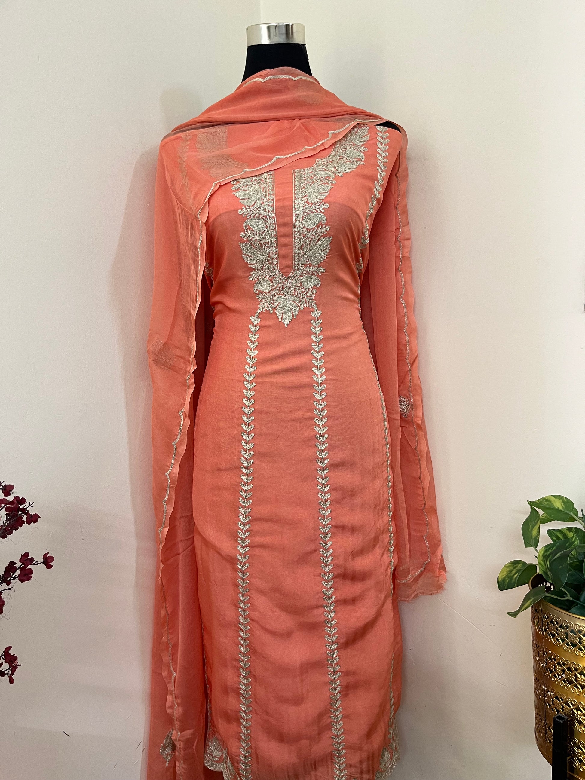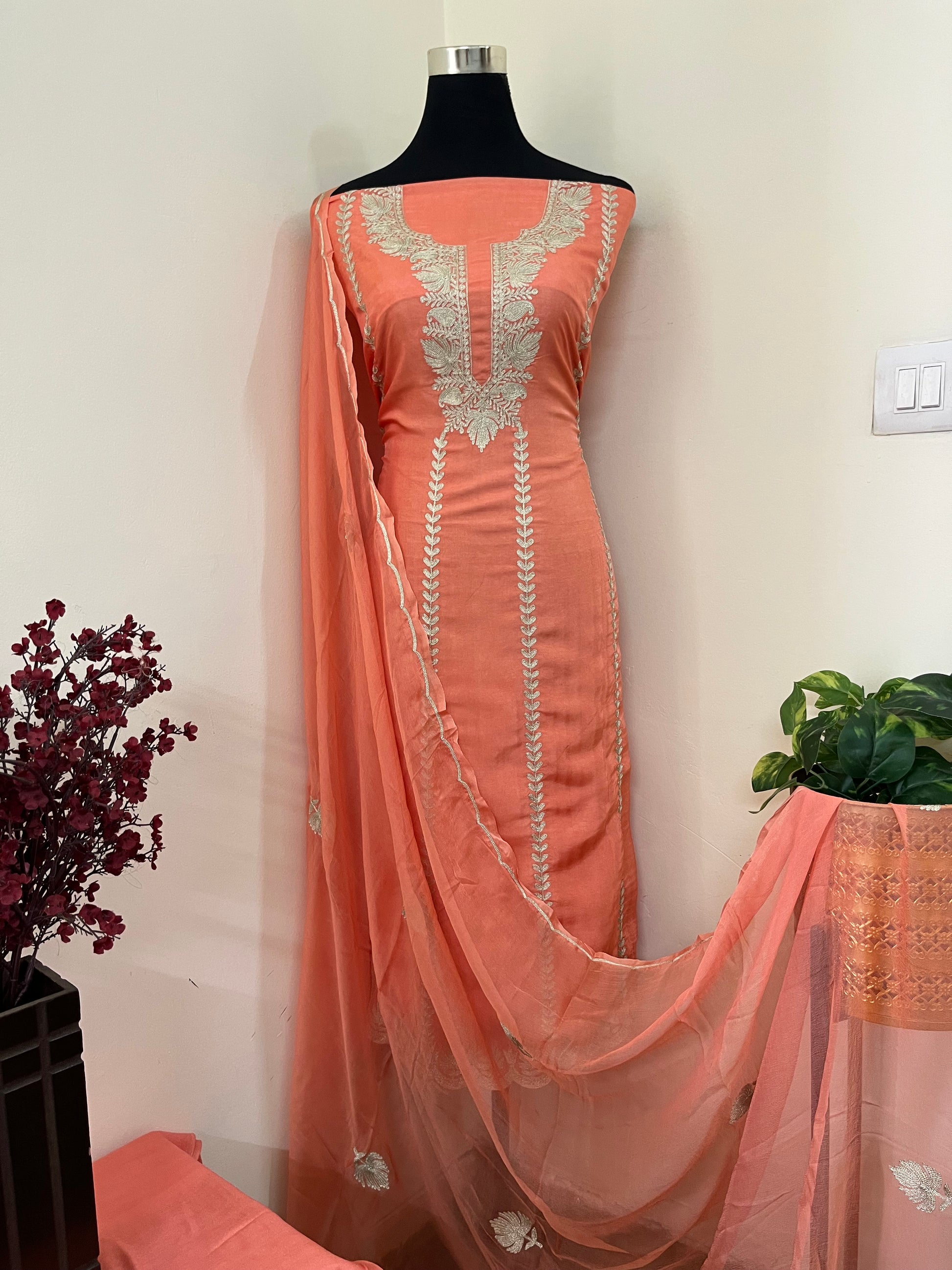 Sanam’ Peach Silk Tilla Embroidered Suit material