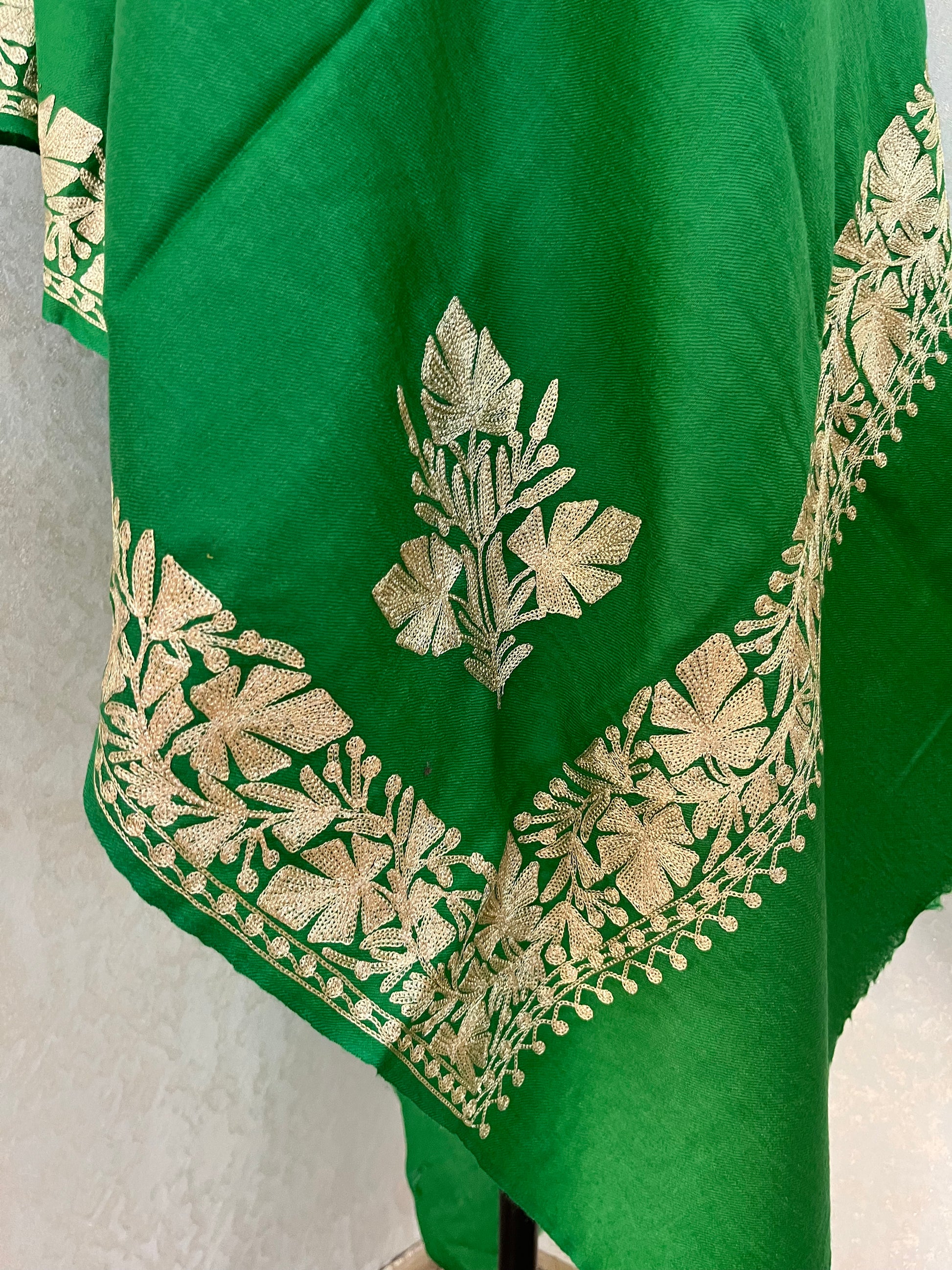 Green Semi Pashmina Tilla Embroidered stole