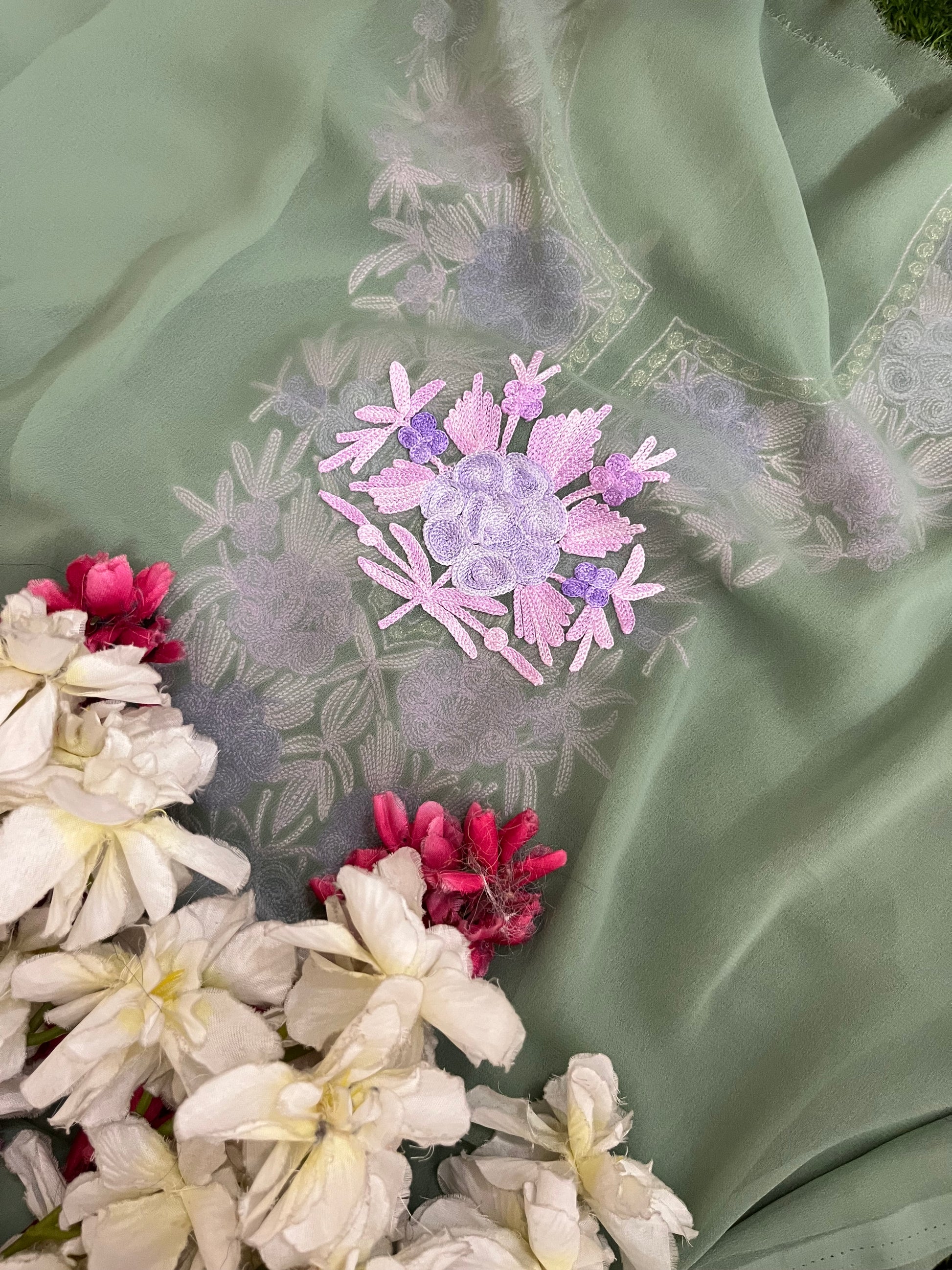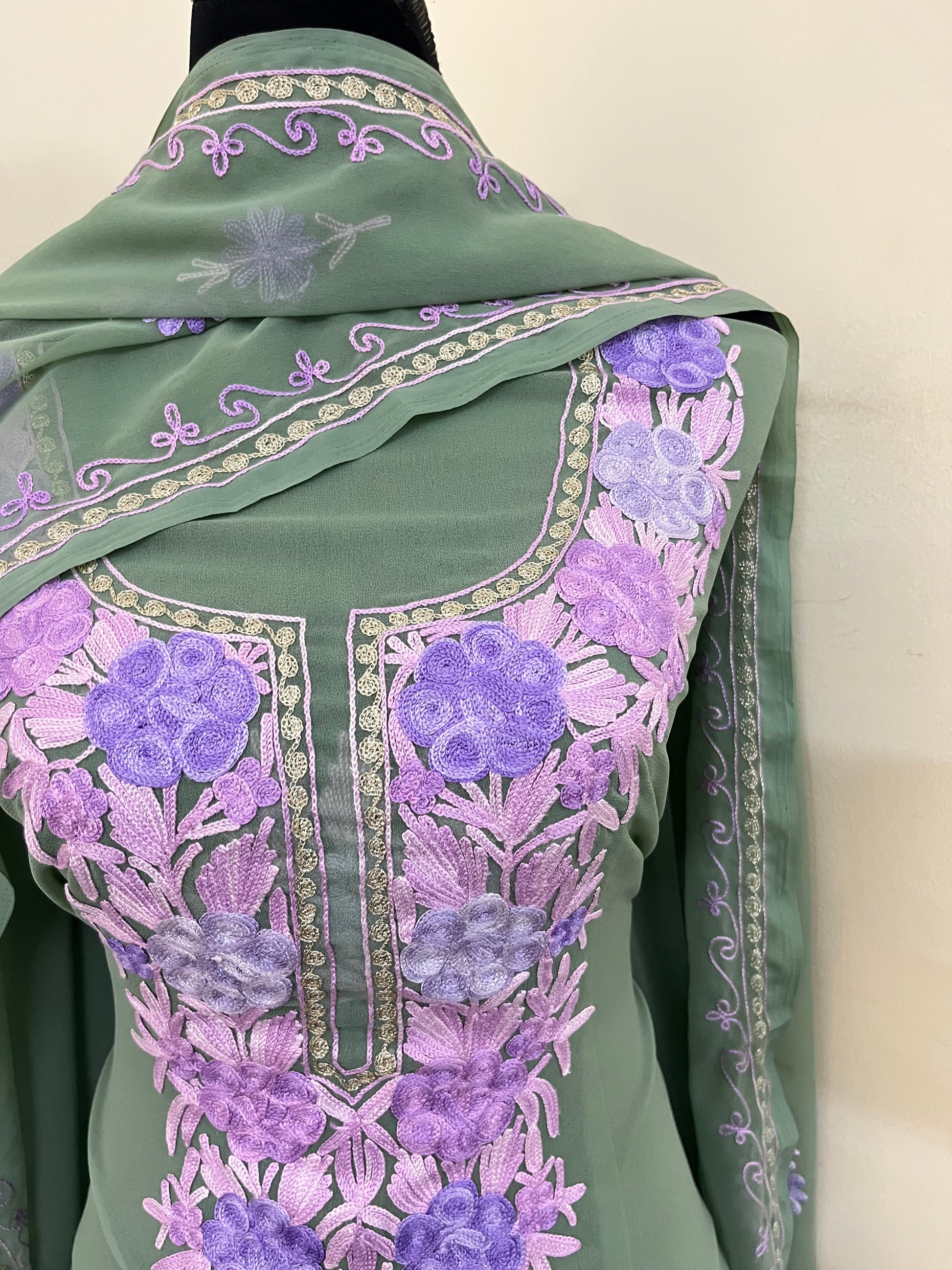 Green Georgette 3 Pc Aari Embroidered Suit Set