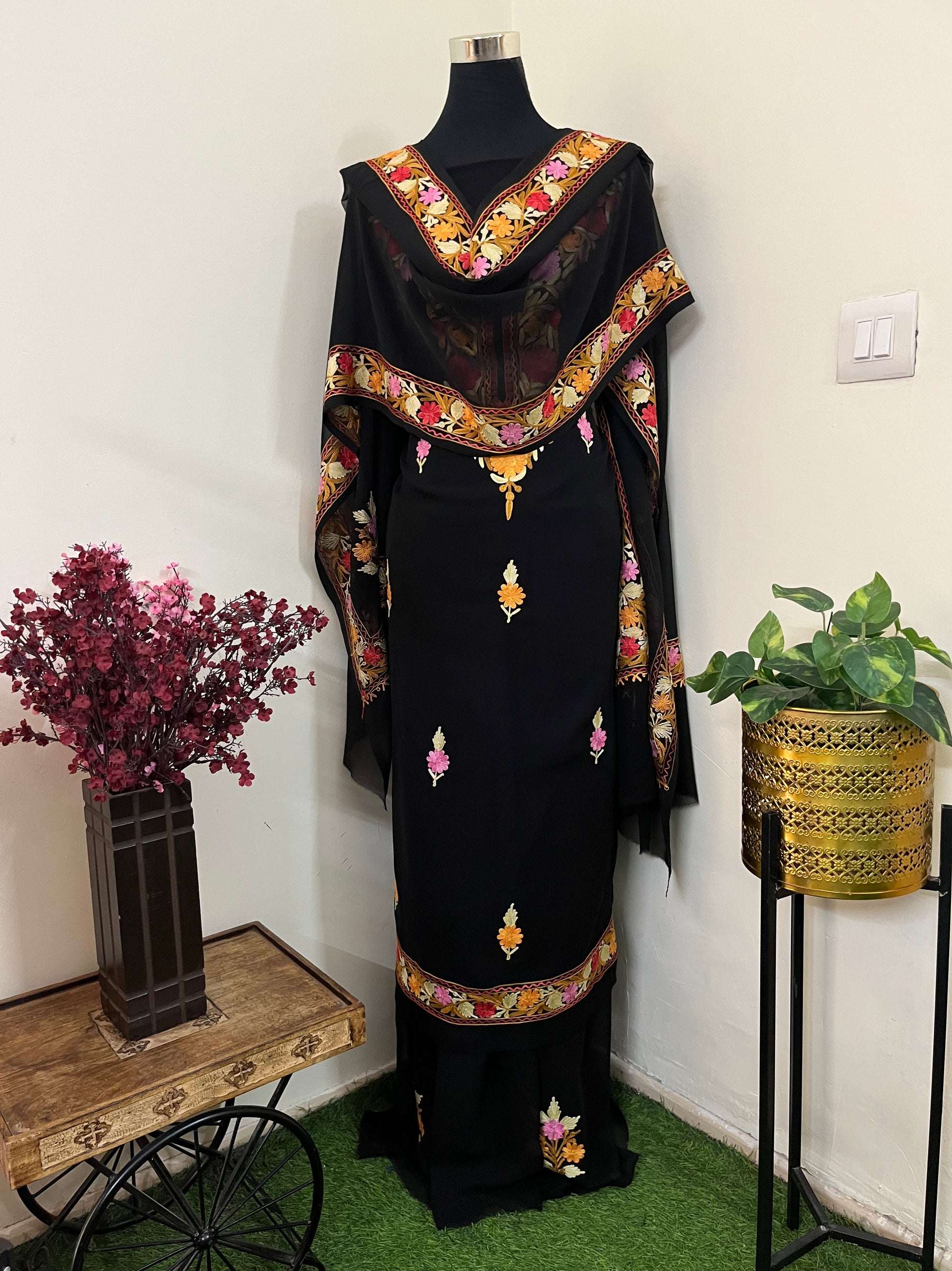 Black Georgette 3 Pc Aari Embroidered Suit Set