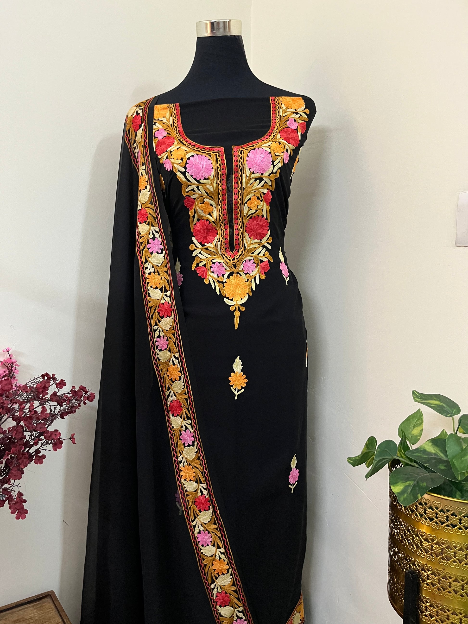 Make your Lunches more by adding this gorgeous Black Red Aari embroidered suit into your specials !!