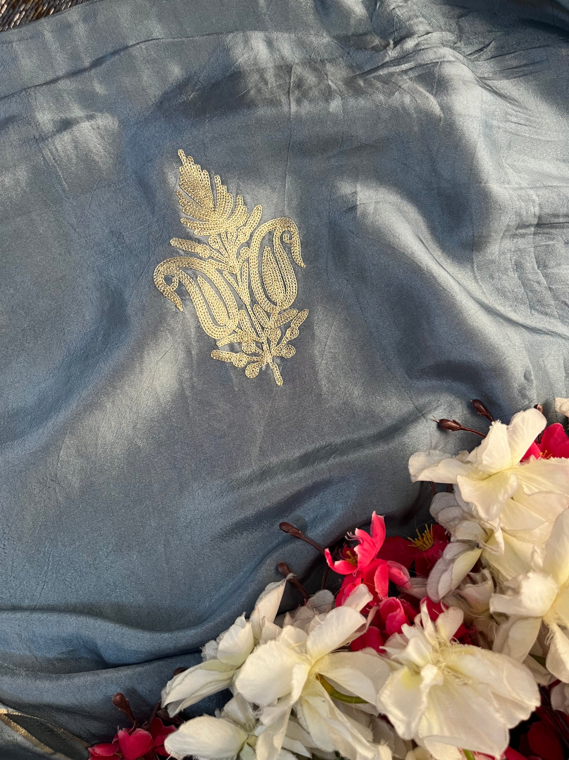 Experience the exquisite artistry of Kashmiri tilla embroidery .Each stitch tells a tale of craftsmanship, tradition, and intricate beauty. Elevate your wardrobe with this timeless treasure.