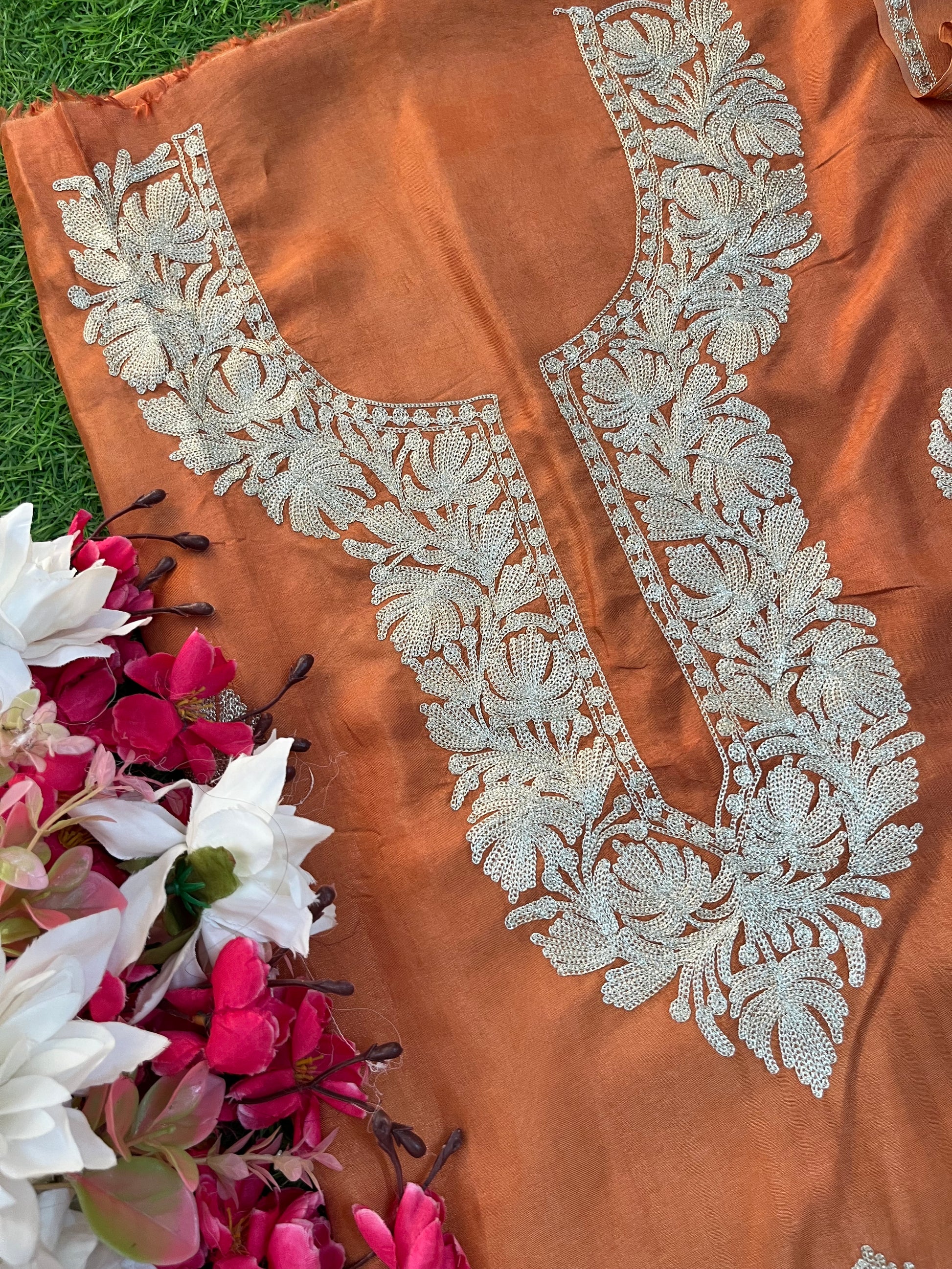 Dull Orange Silk Tilla Kashmiri Suit