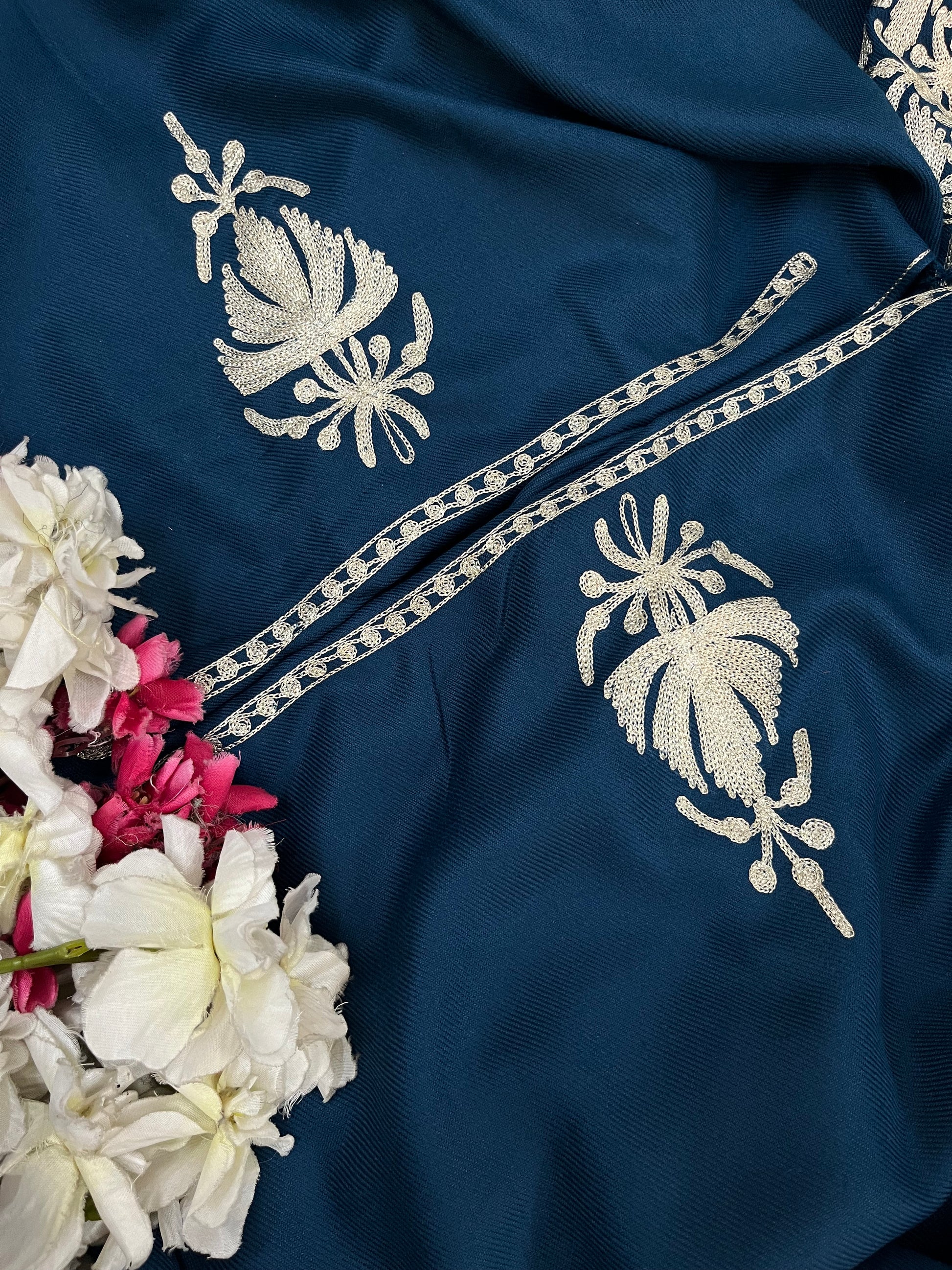 Peacock Blue Tilla Embroidered 3pc Suit Stole