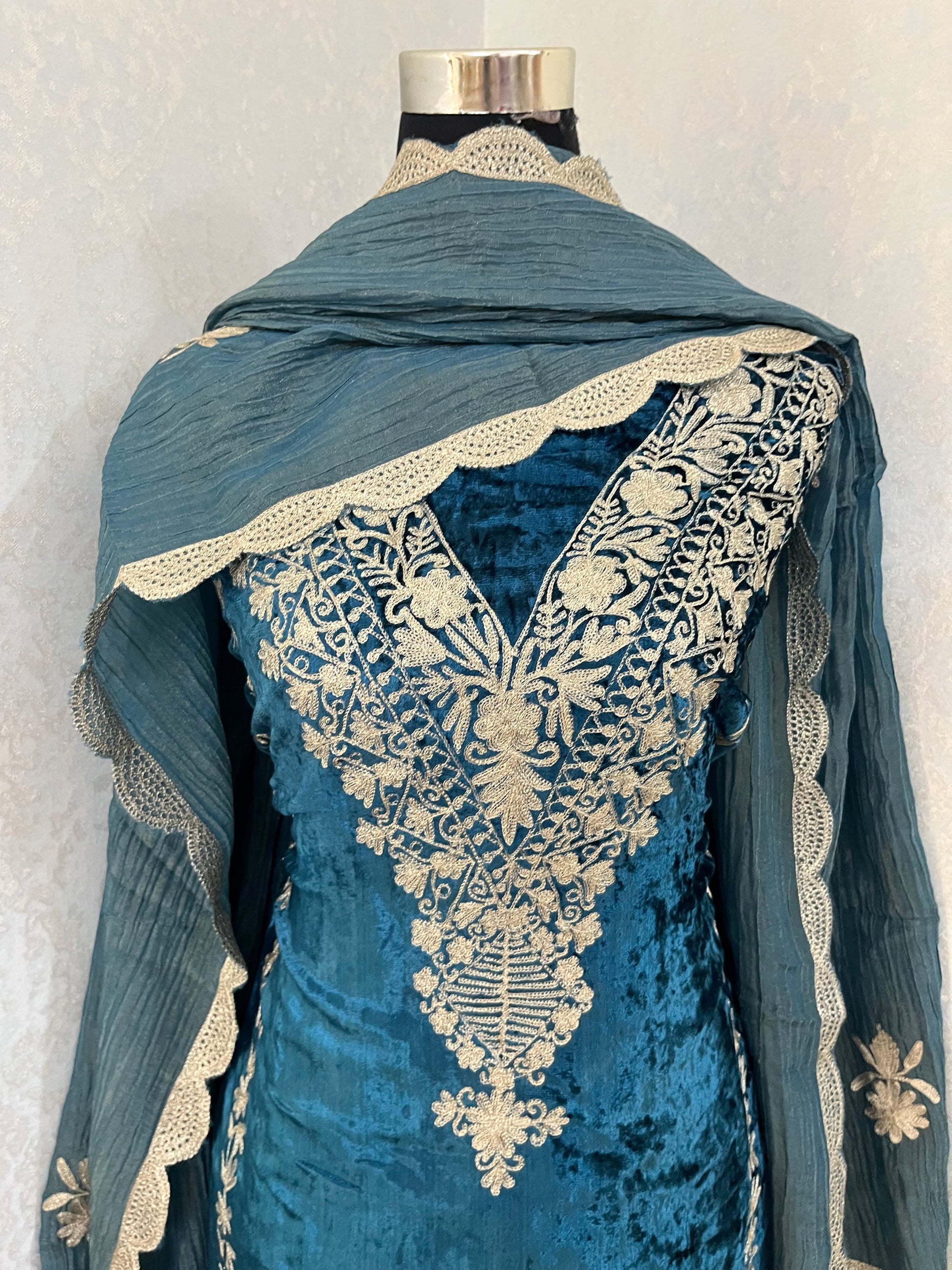 Teal Blue Tilla Pure Makhmal 3pc Suit Material