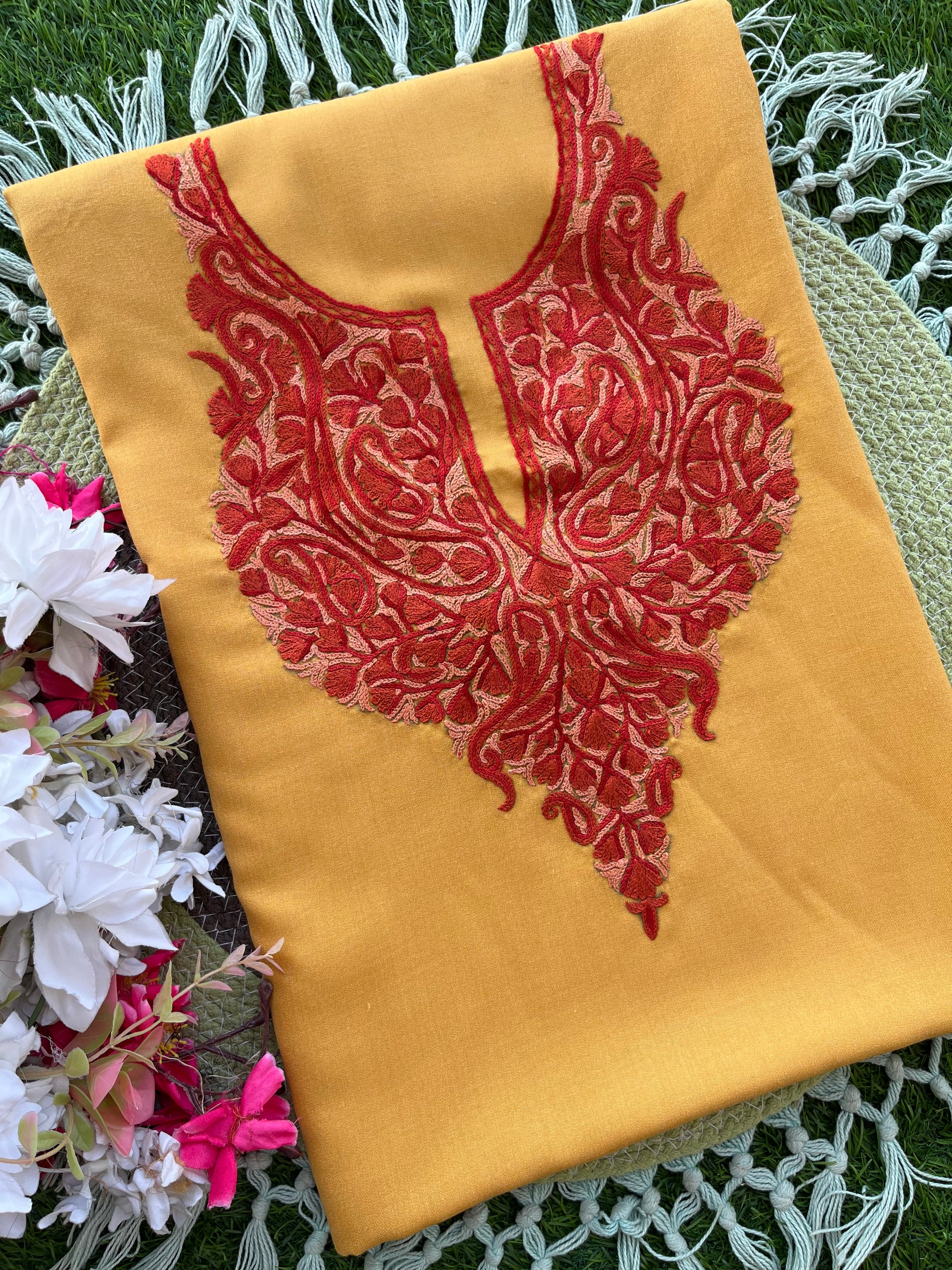 Yellow Cotton Two Piece Suit (Hand Embroidered)