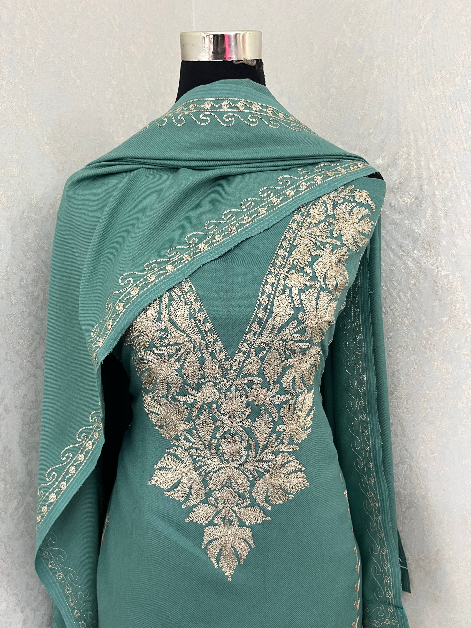 Soft Green Tilla Embroidered 3pc Suit Stole