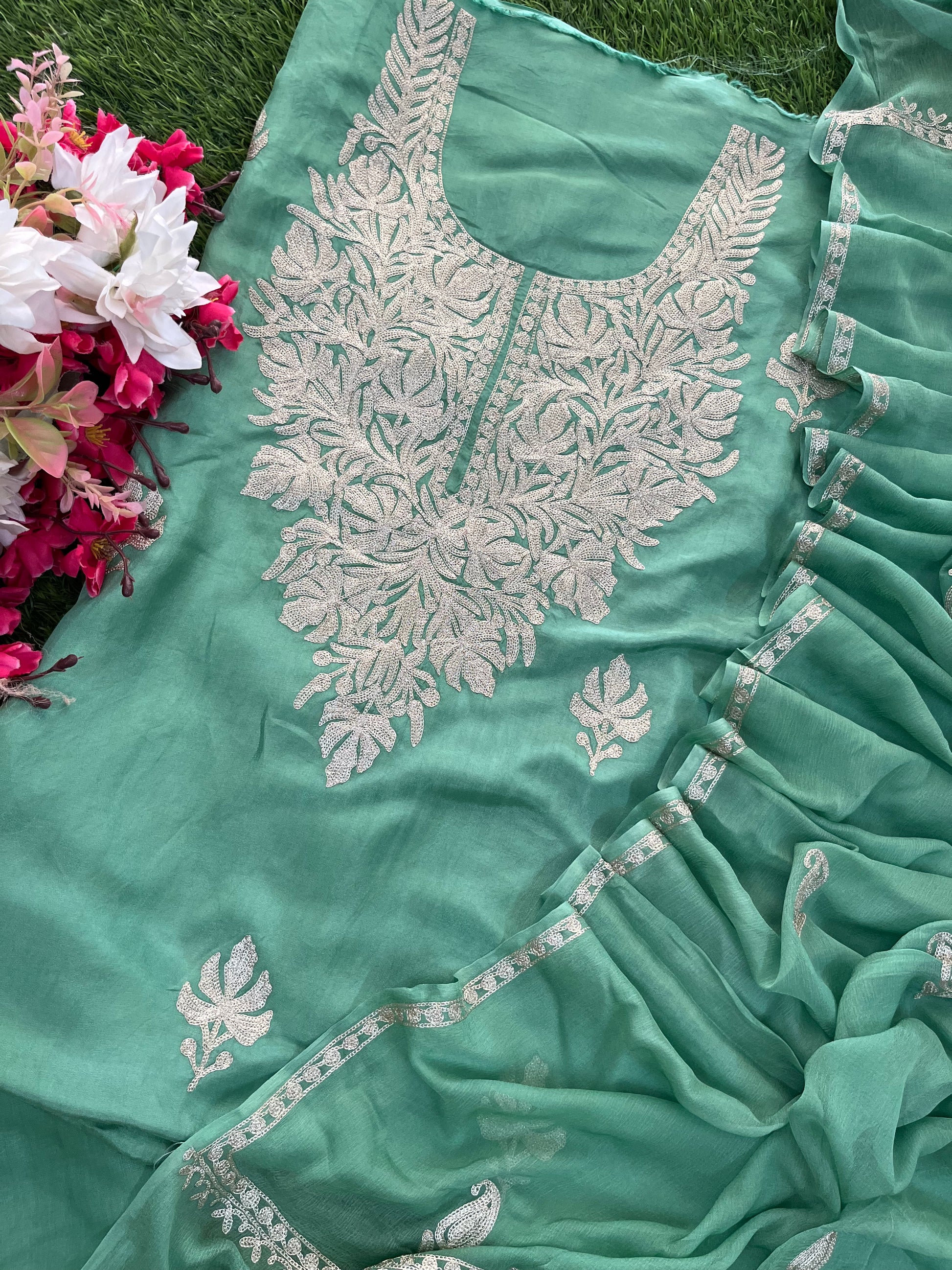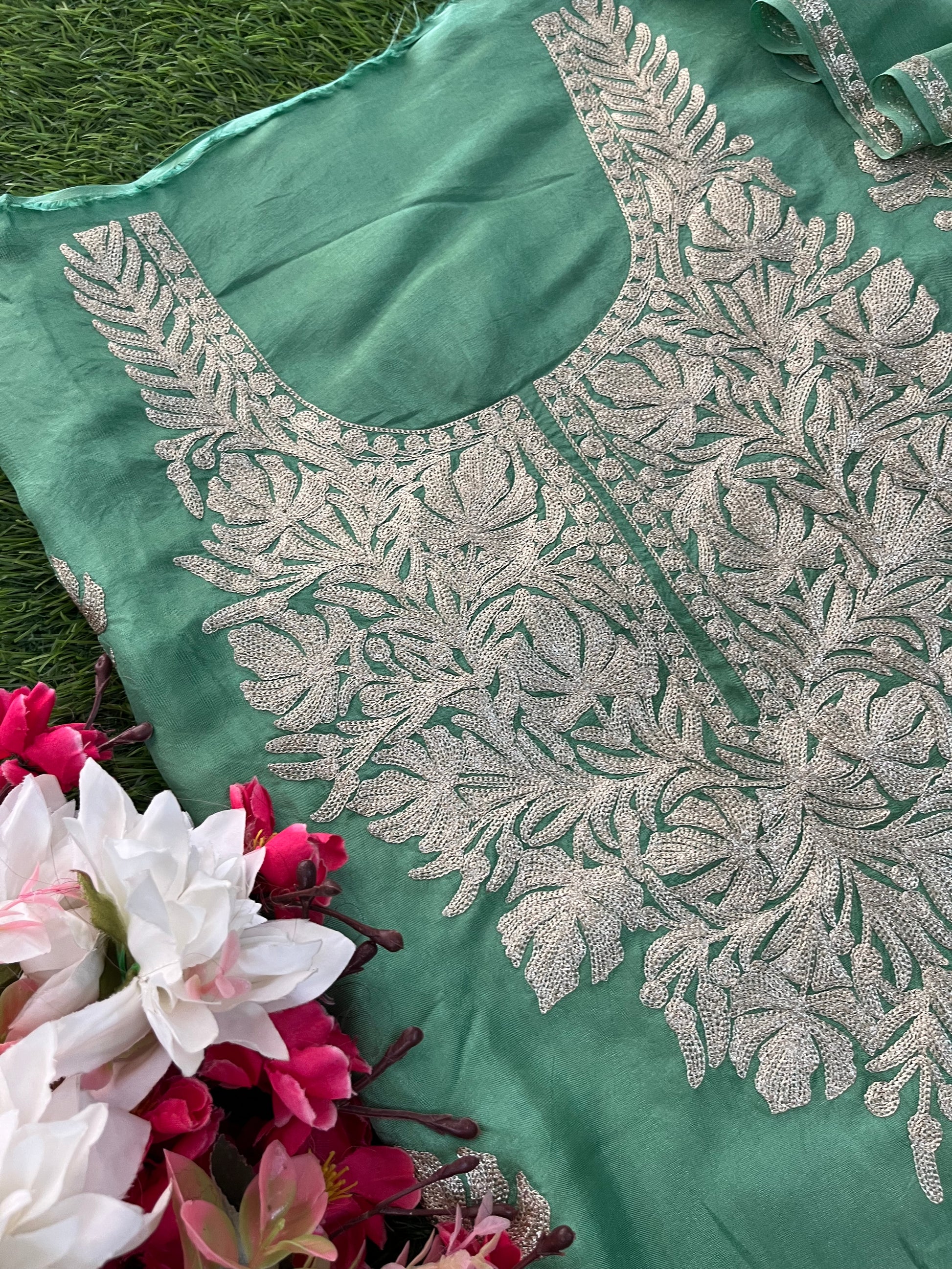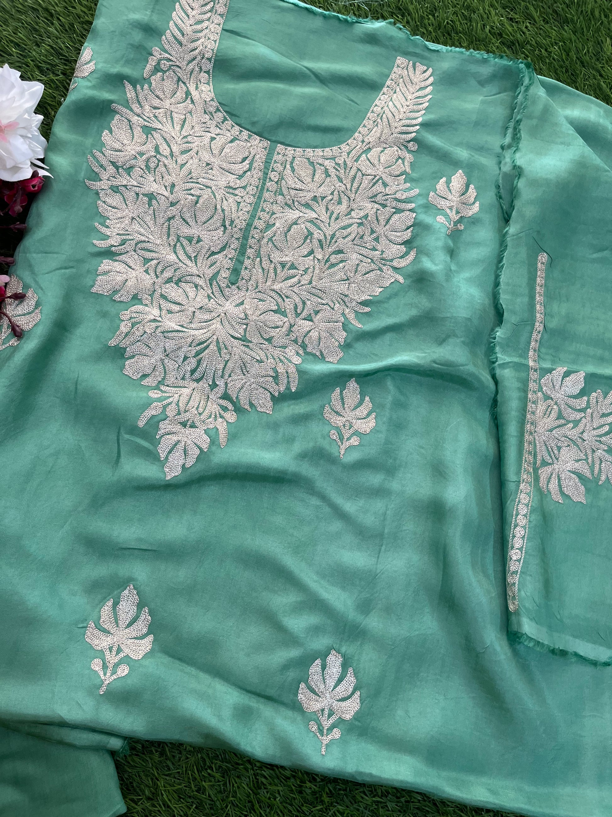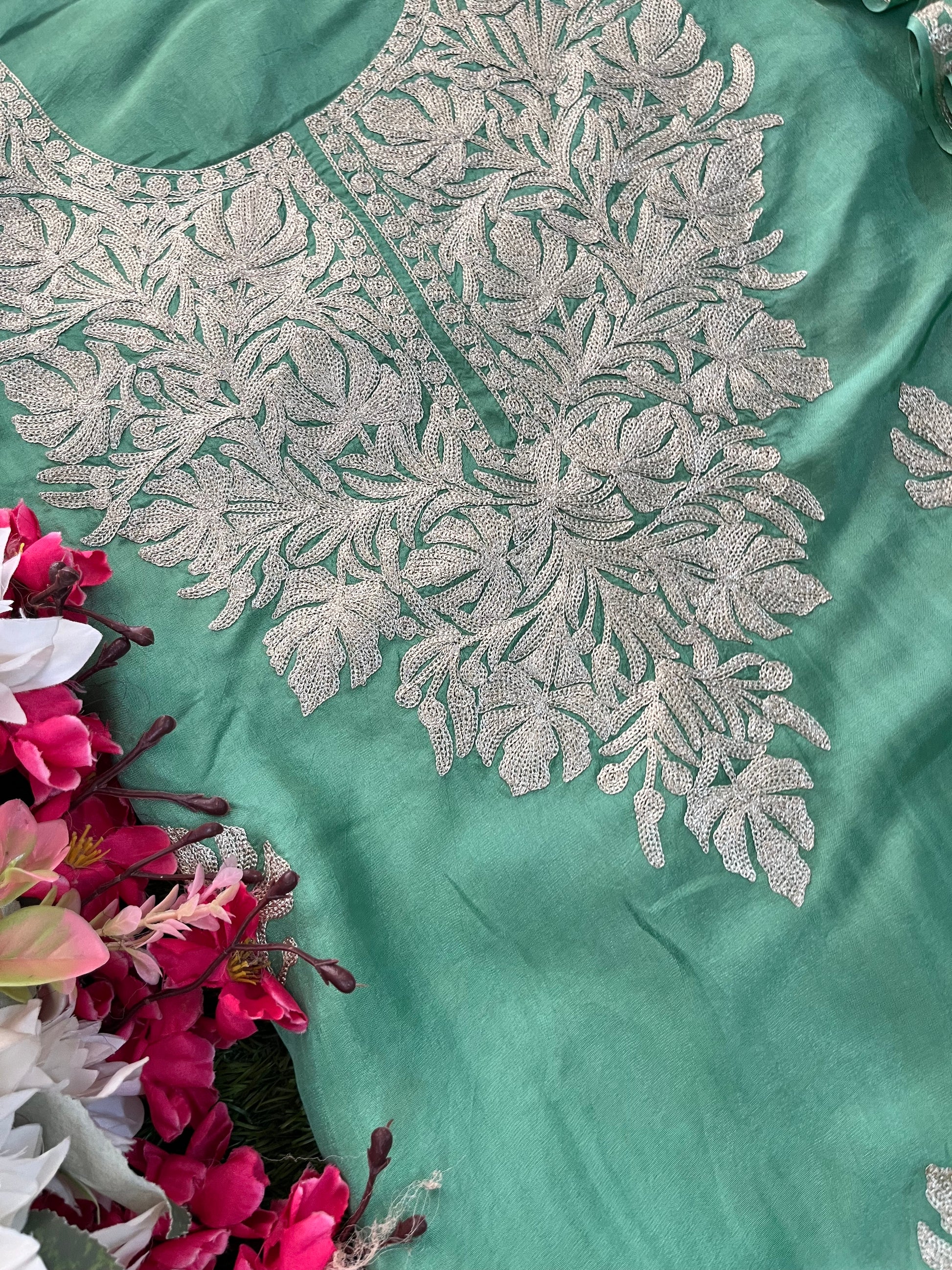 Pastel Green Sanam’ Silk Tilla Kashmiri Suit