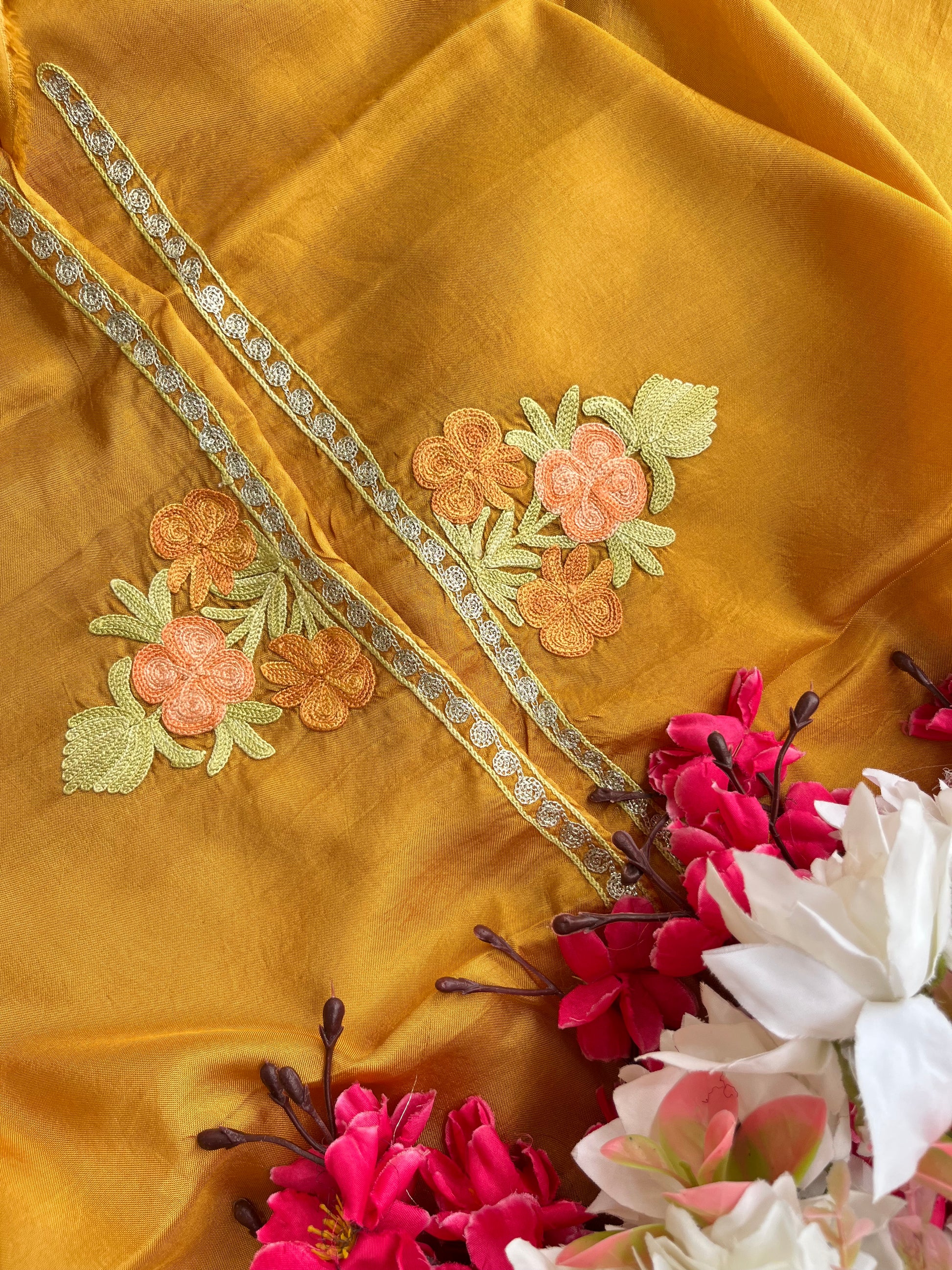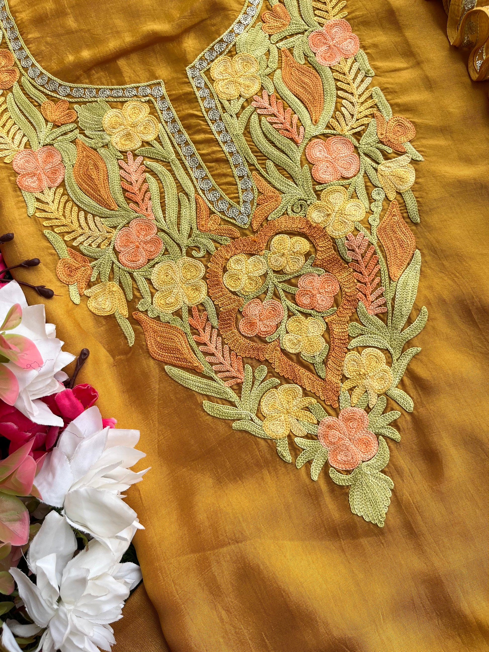 Gold Opada Silk Kashmiri Suits