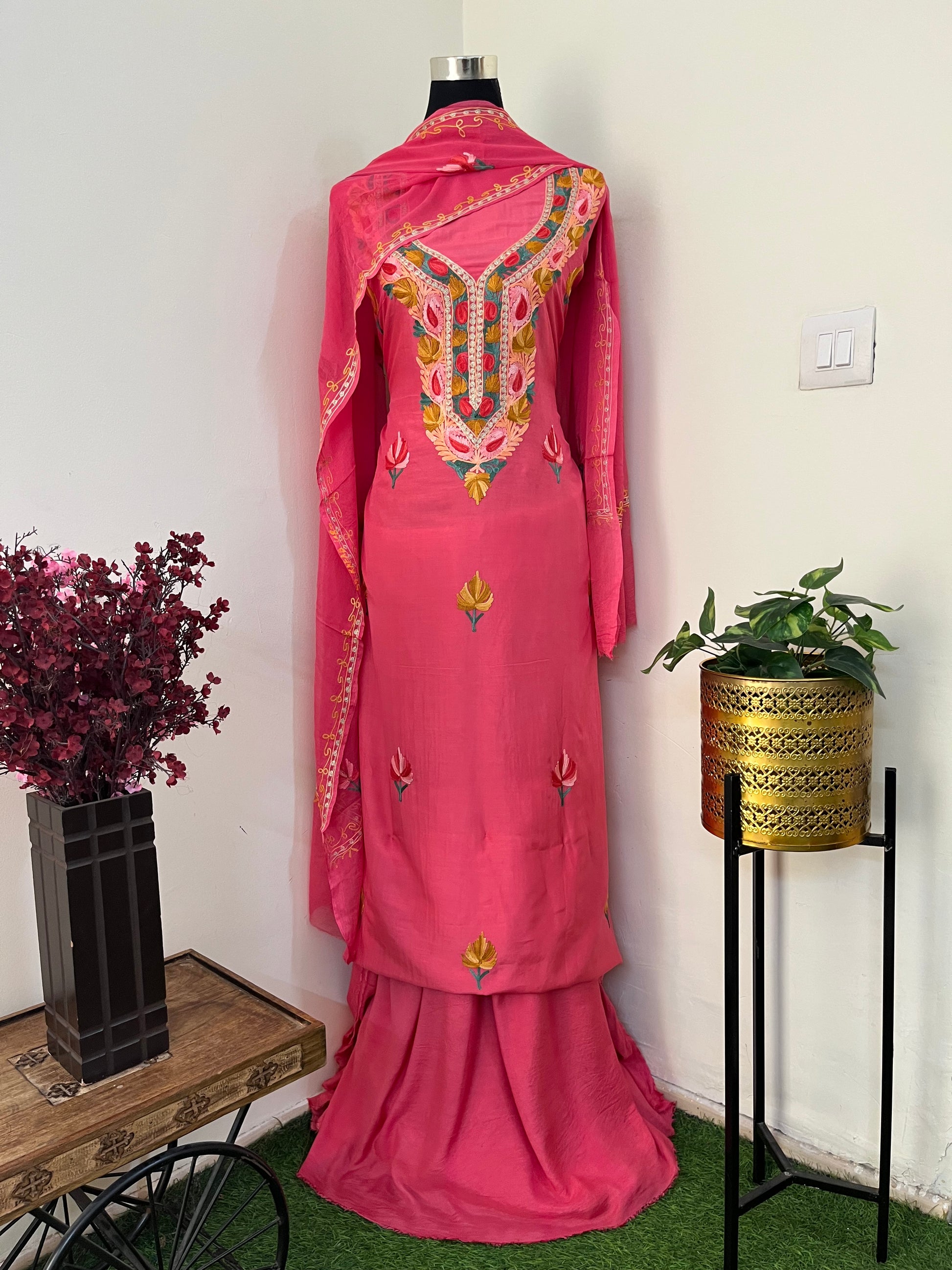 Candy Pink Muslin Cotton Aari Embroidered 3pc set