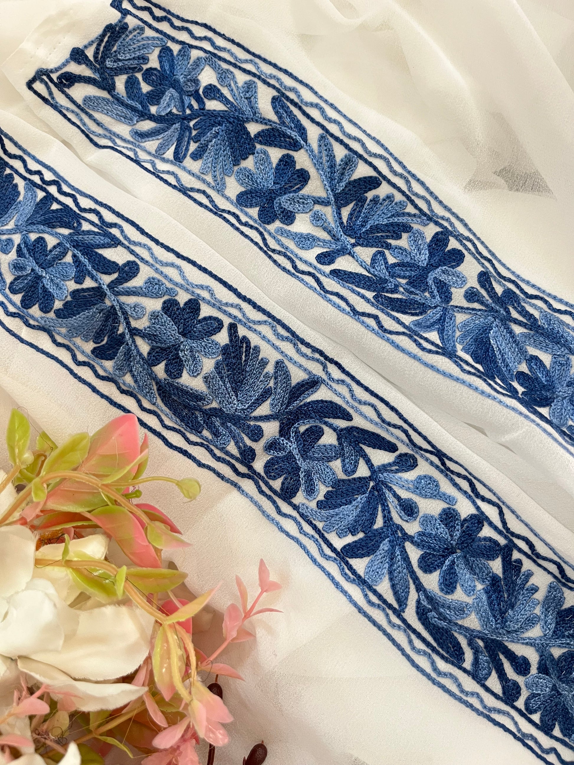 The embroidery is done with a single colour thread to bringing out the best of KASHMIR in the best chic way.