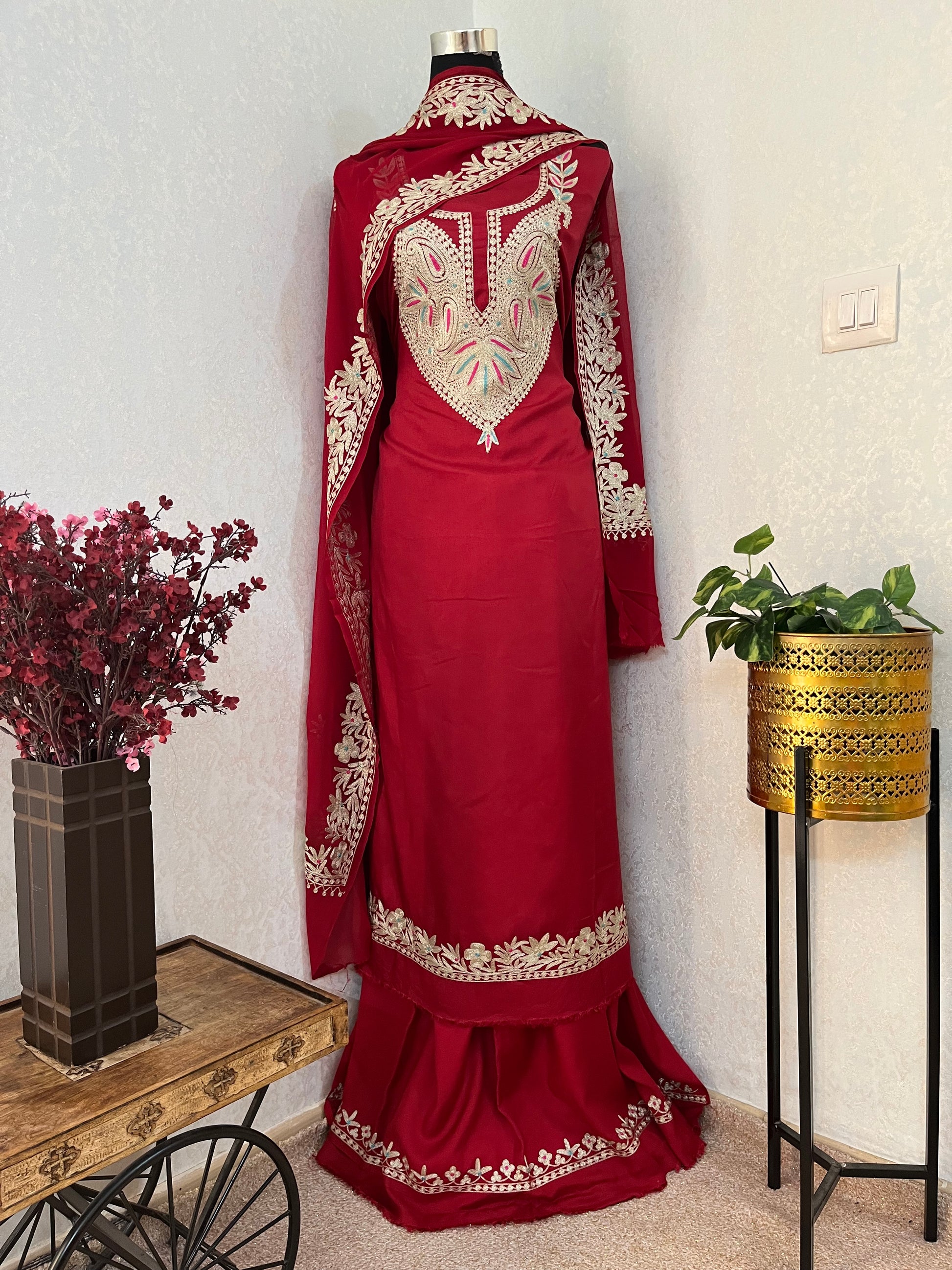 Maroon Opada Silk Kashmiri Suits