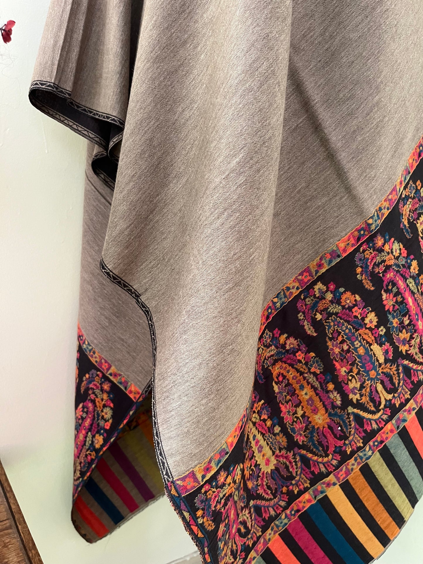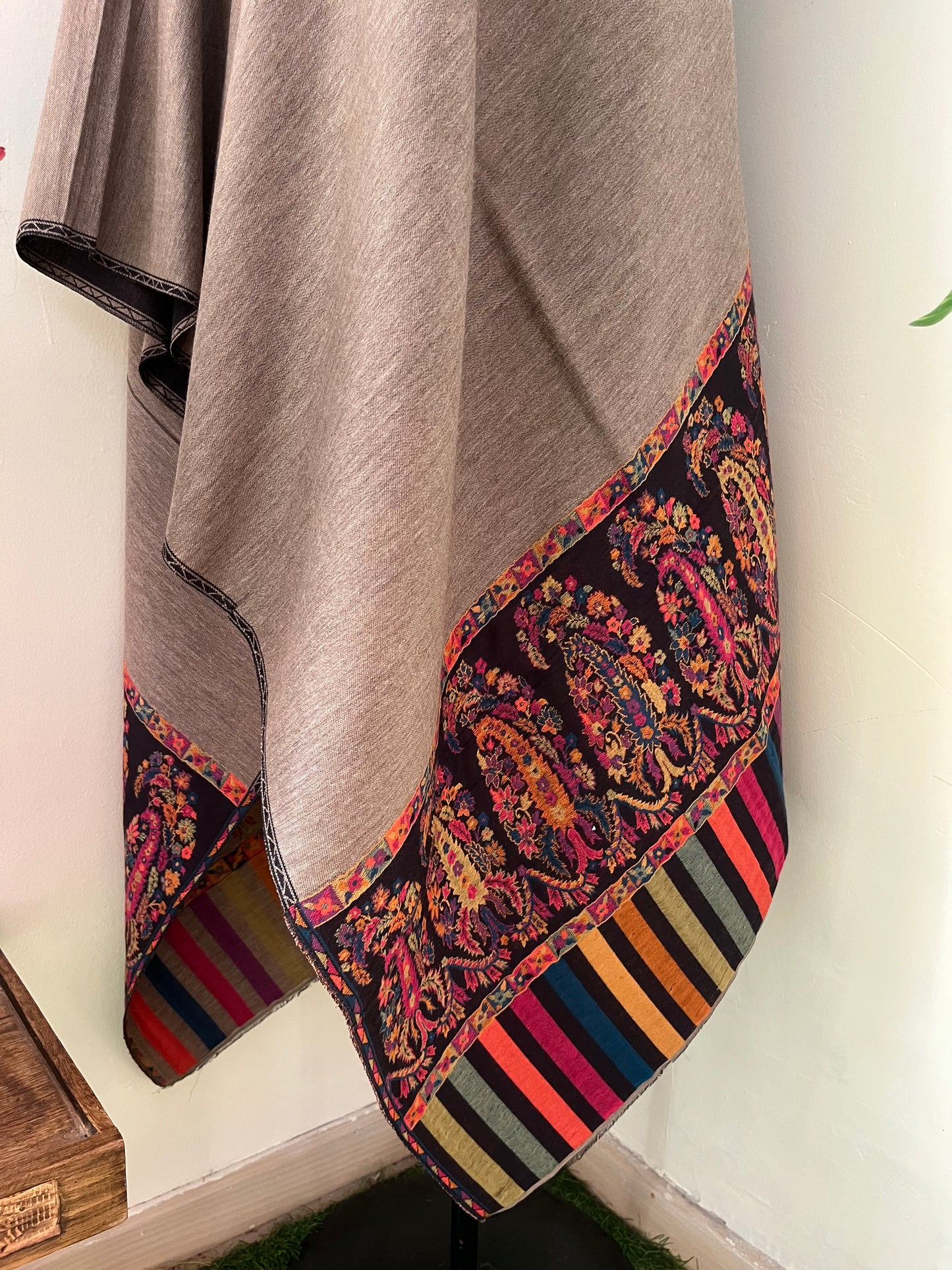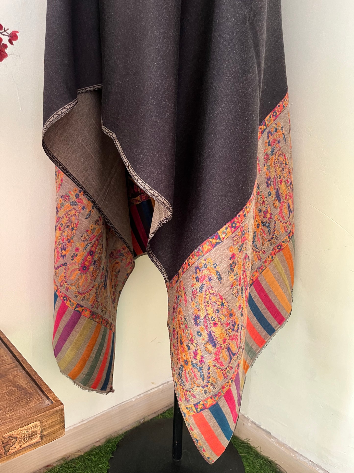 Black and Beige Kani Fine Semi Pashmina Reversible stole
