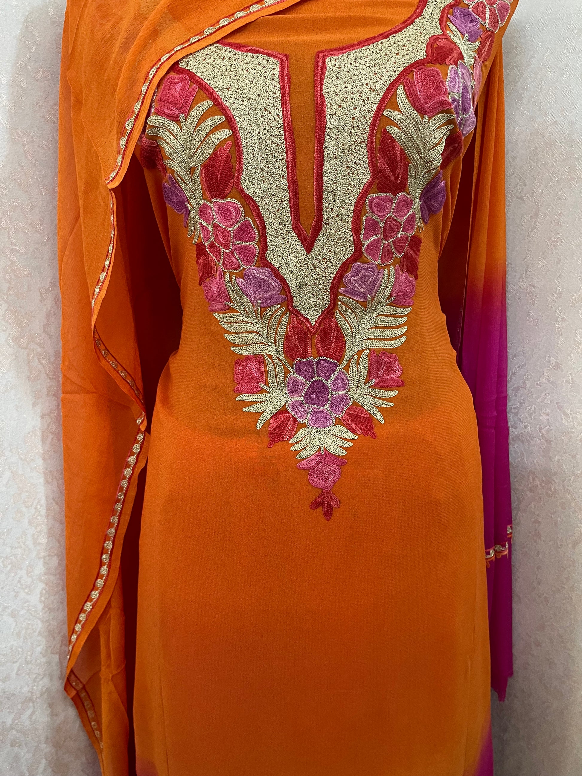 Orange Pure Georgette Double Shade Kashmiri Suit