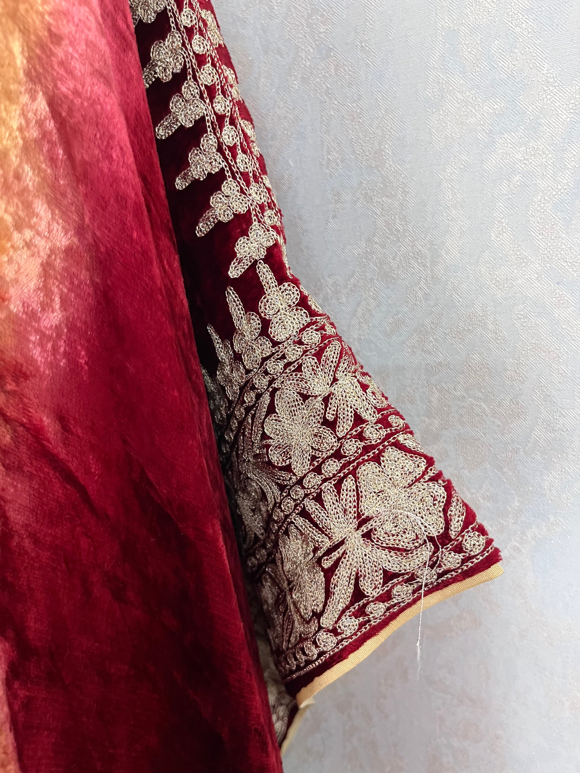 Gold Tilla Embroidered Pure Makhmal Kashmiri Kaftan Set