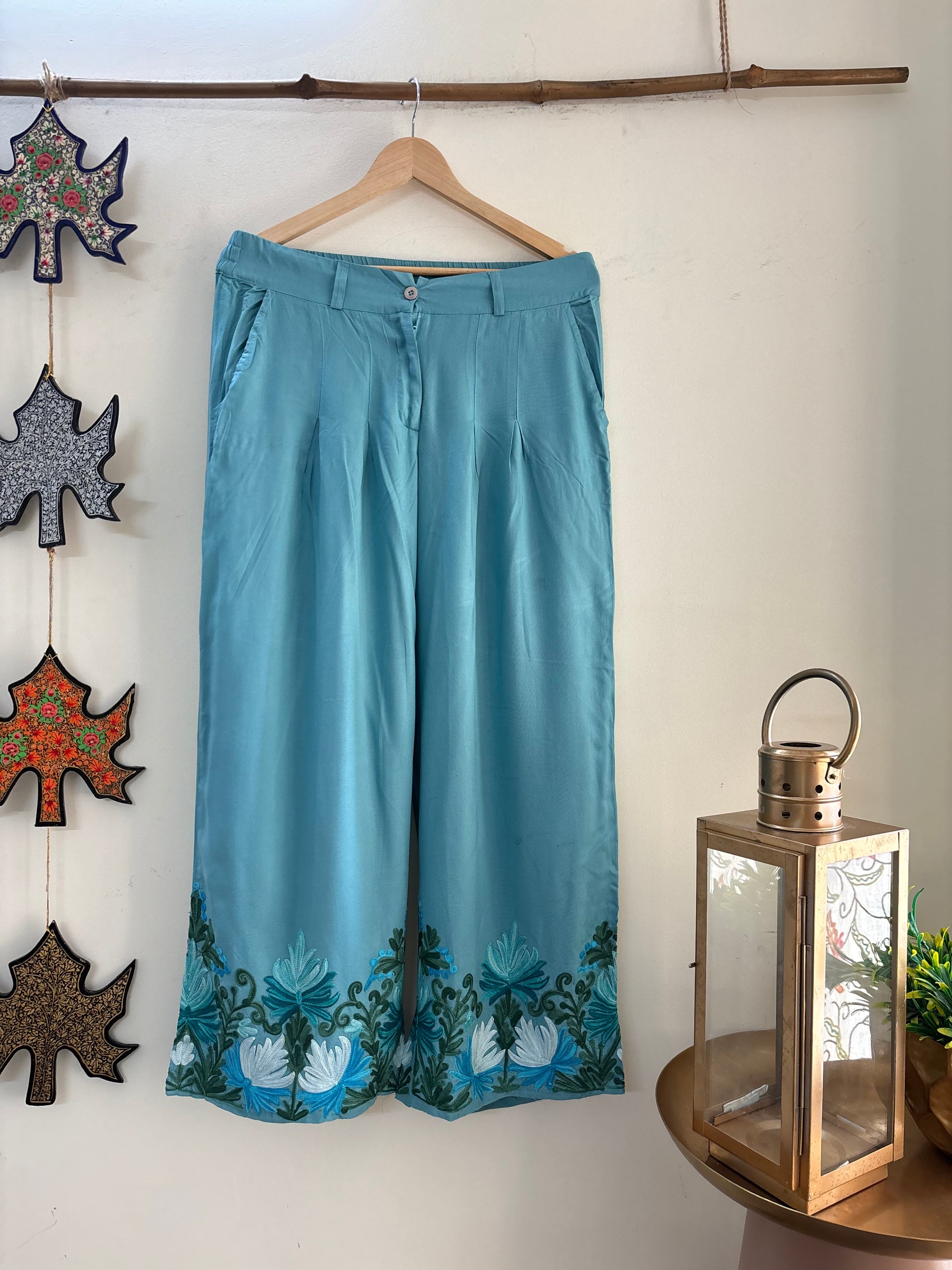 Women Blue Chinaar Aari Embroidered Palazzos ‘30’
