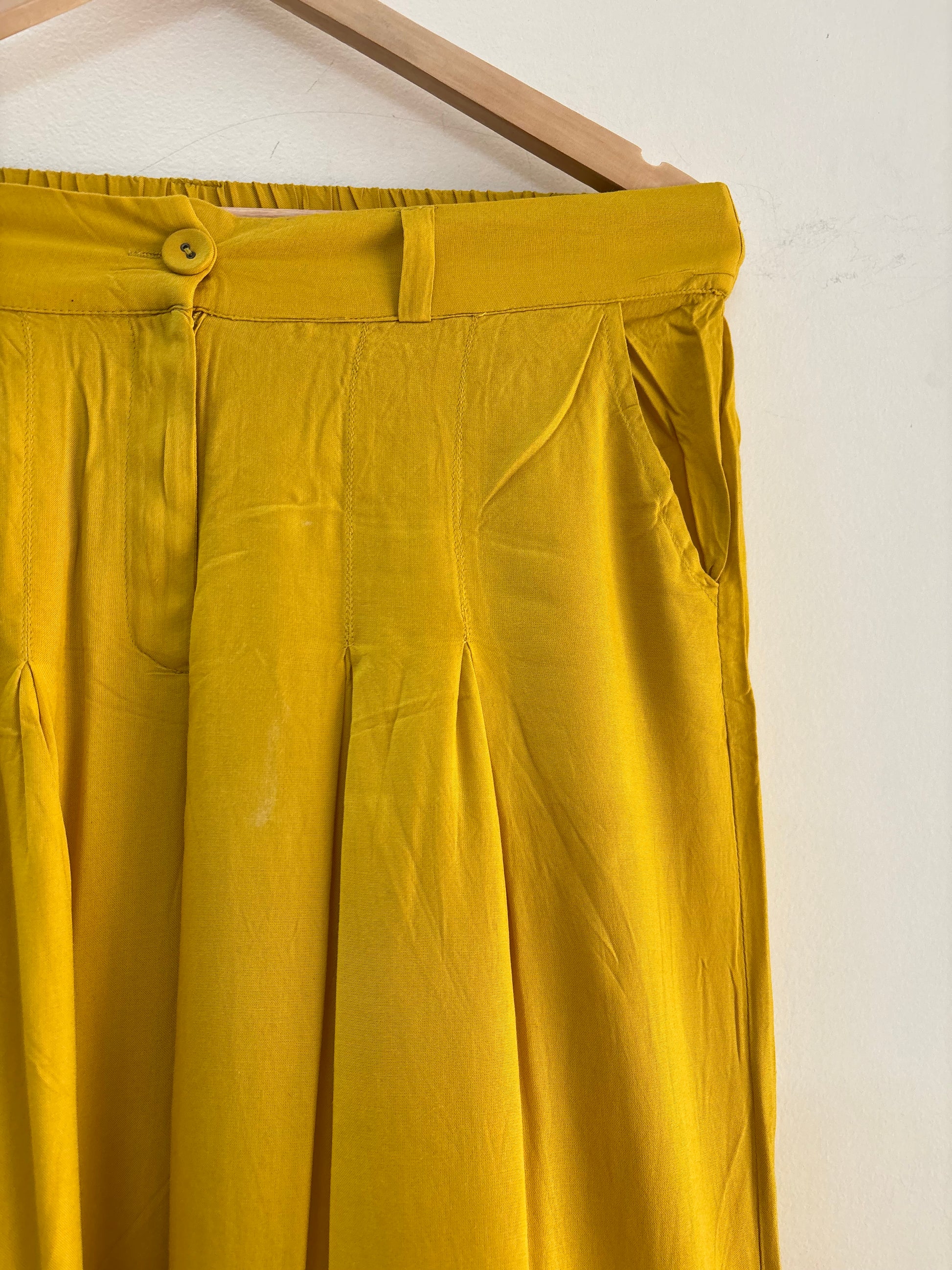 Complete any casual or ethnic look with these palazzos designed and embroidered by Saugaat Station . Be sure to pair them up with a printed tunic and sandals for the complete look .