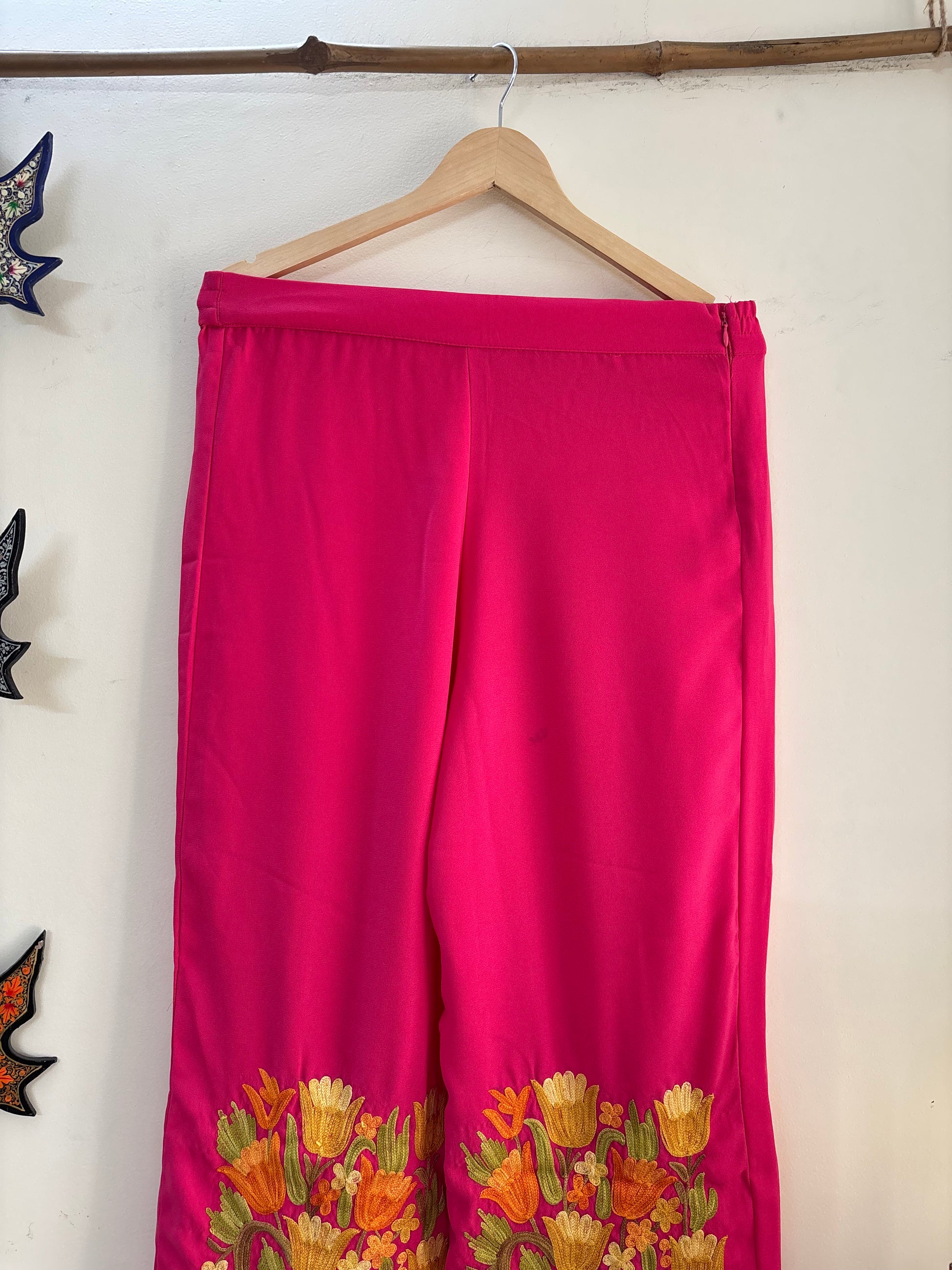Add elegance to your wardrobe with this lovely pair of Aari embroidered palazzos by Saugaat station. You will get most out of your look wearing this piece with your favourite crop top and flats.