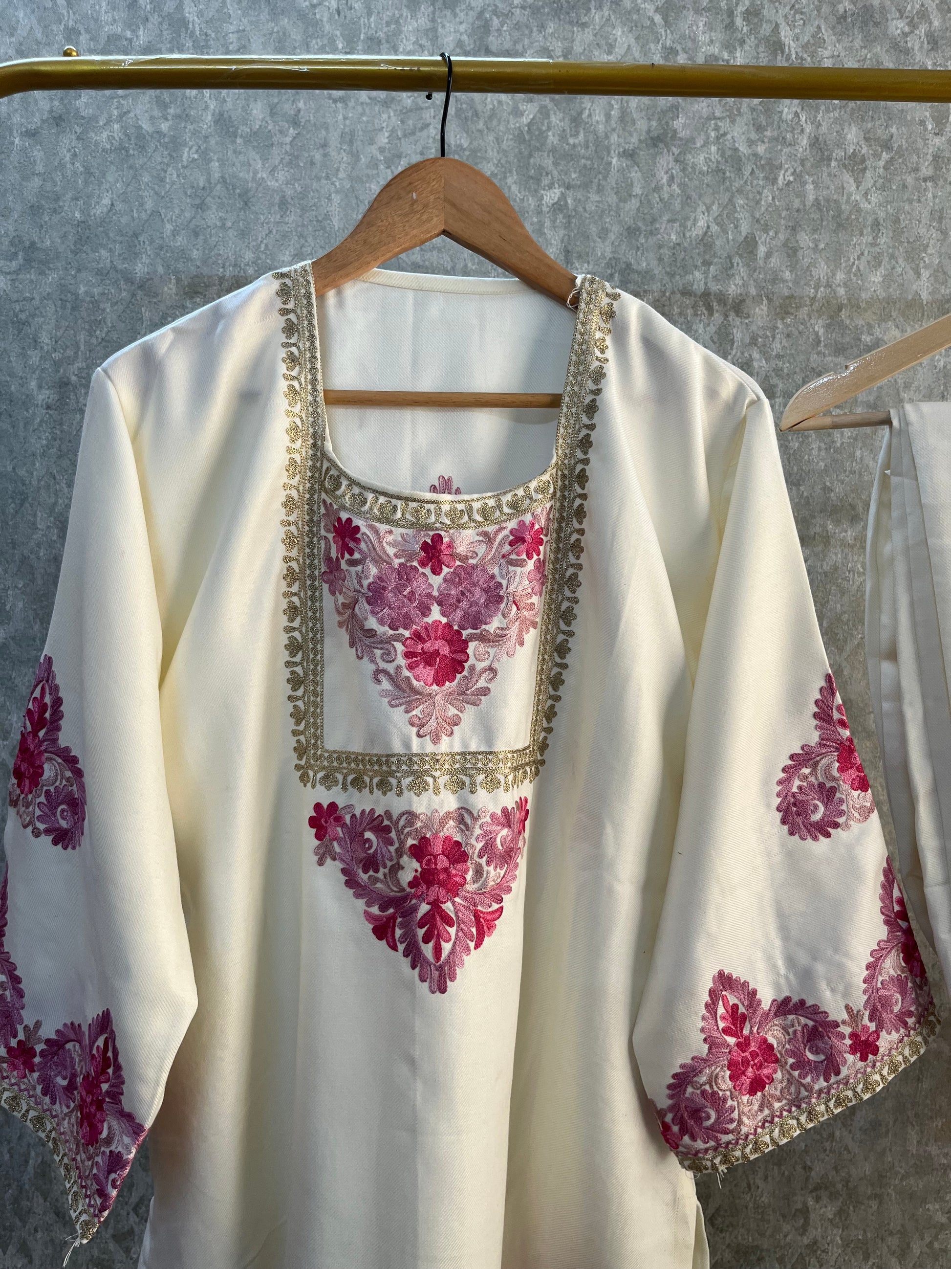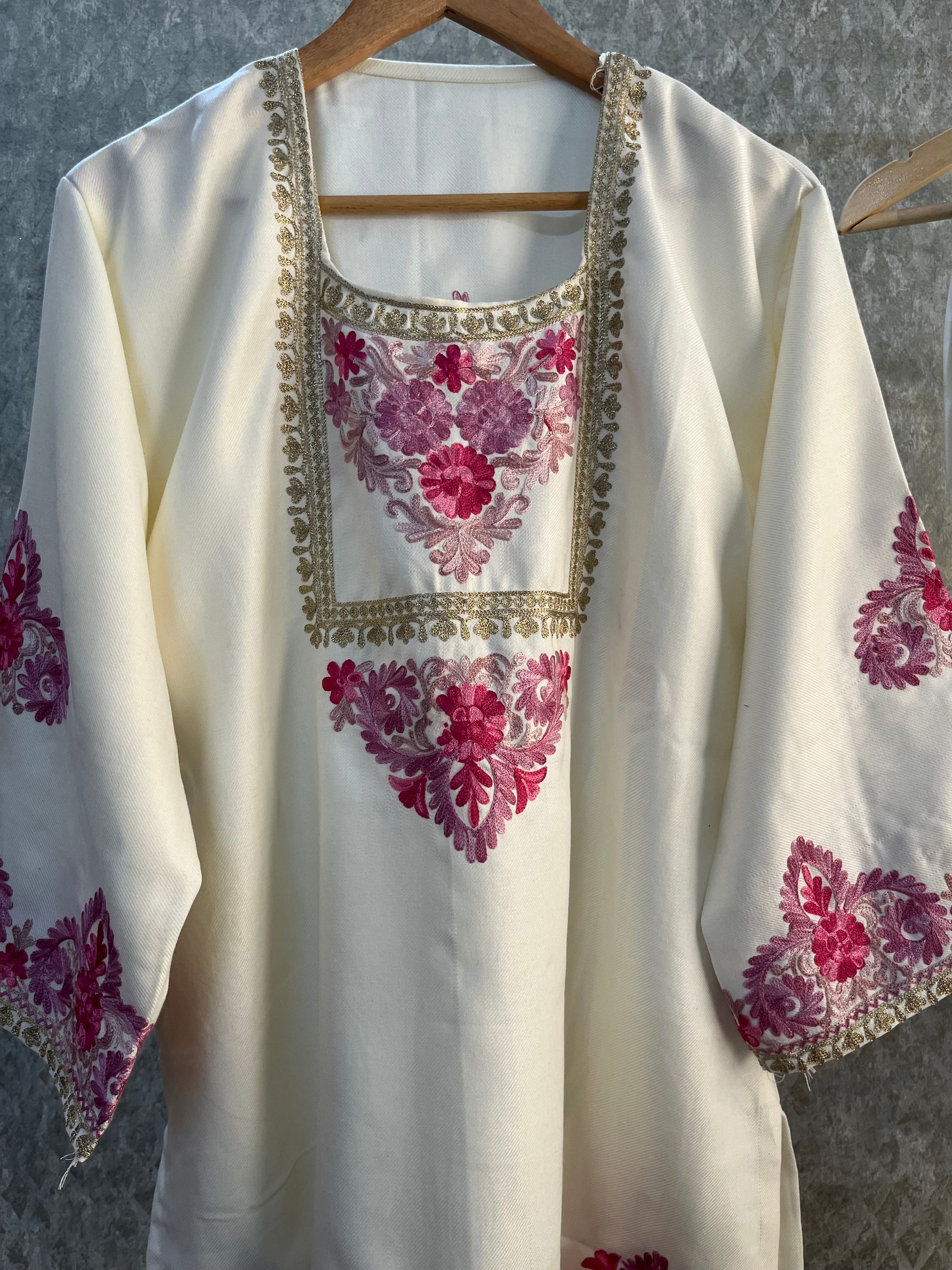Off White Woollen Kashmiri Co-Ord Set ( Size 40)