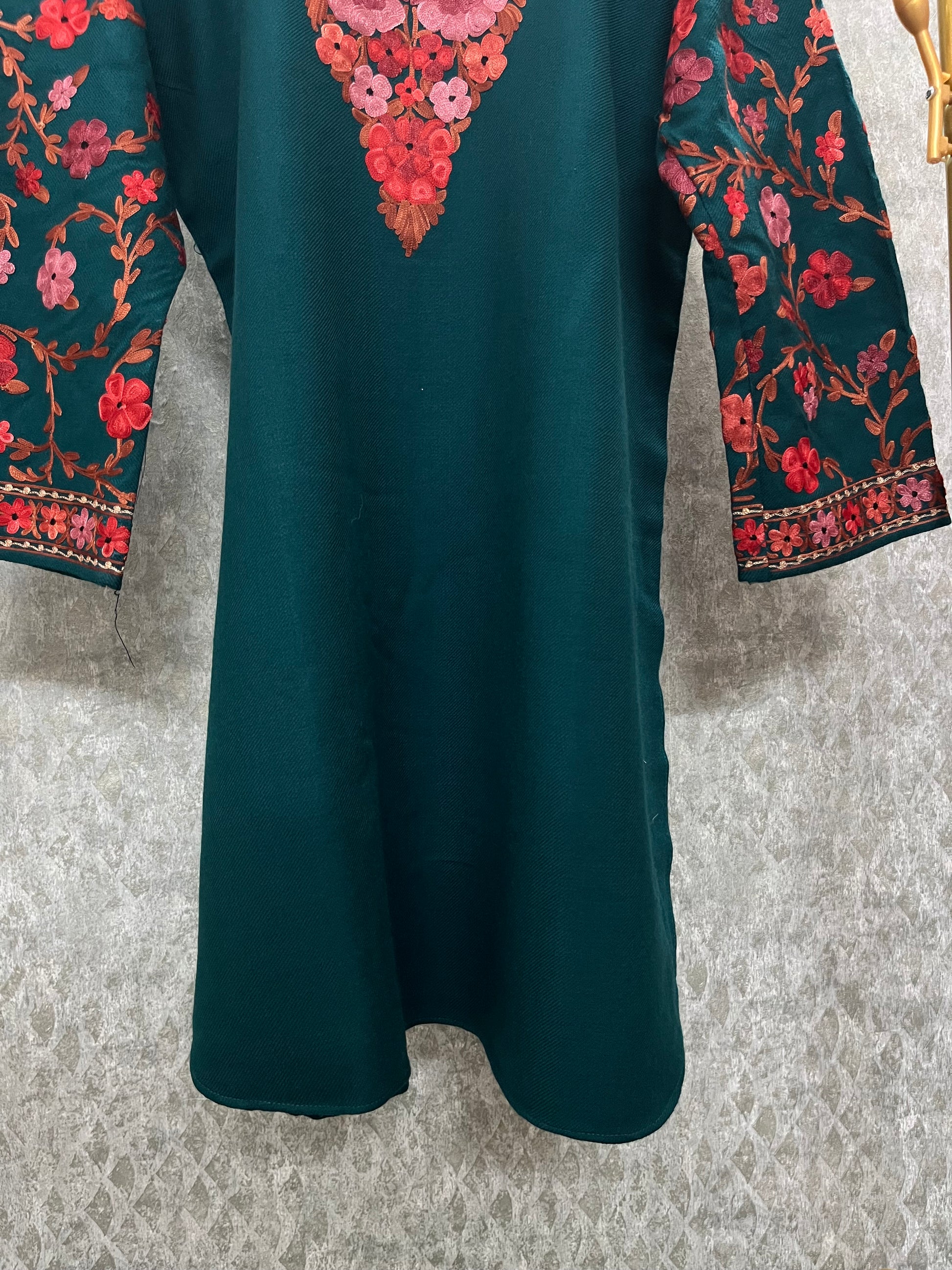 Teal Green Woollen Kashmiri Co-Ord Set ( Size 40 )